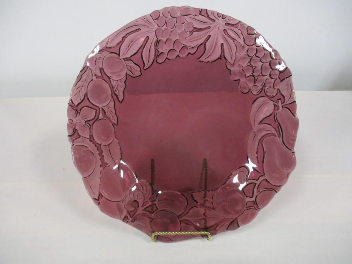 Italian Intaglio Amethyst Embossed Glass Plate