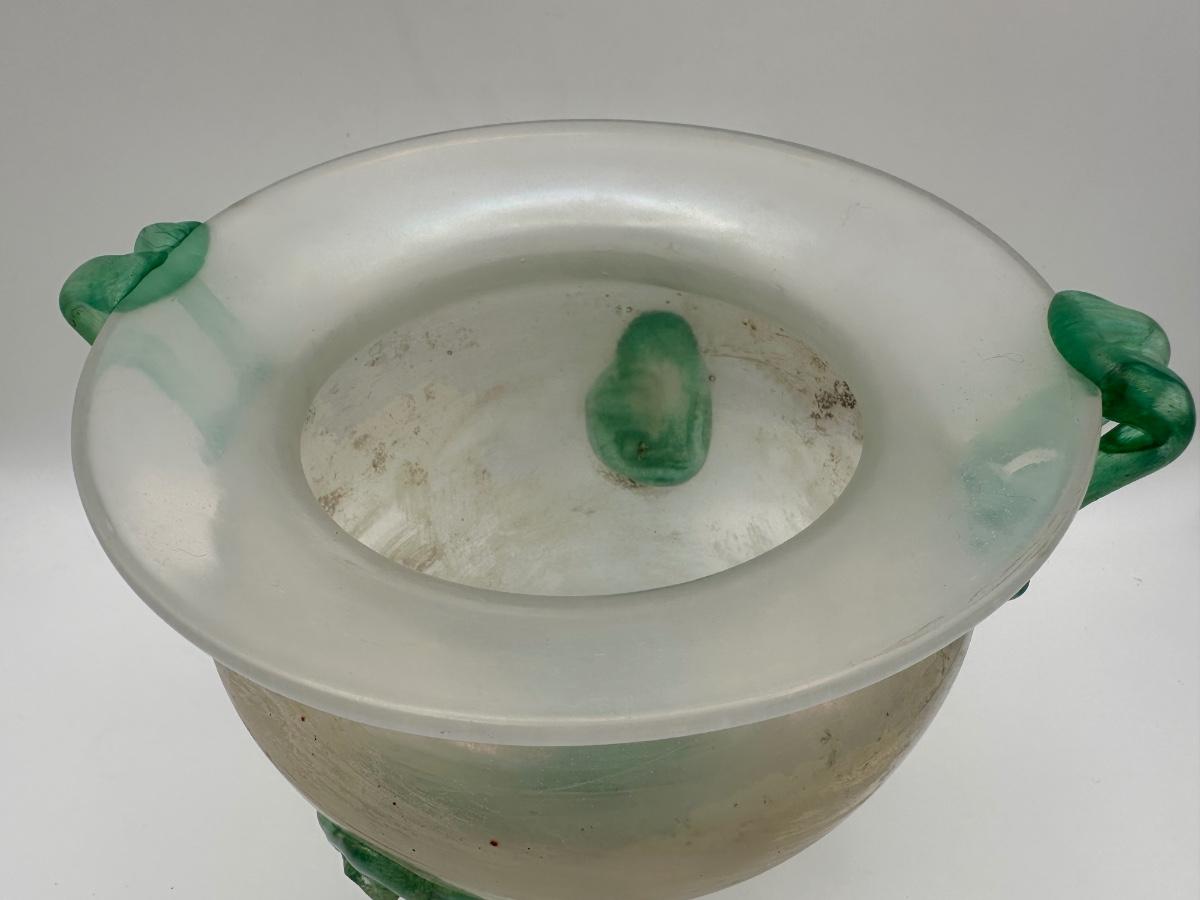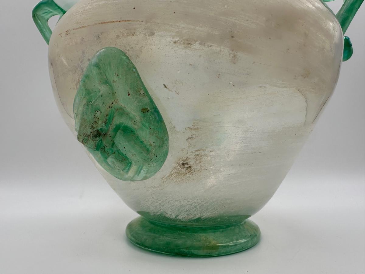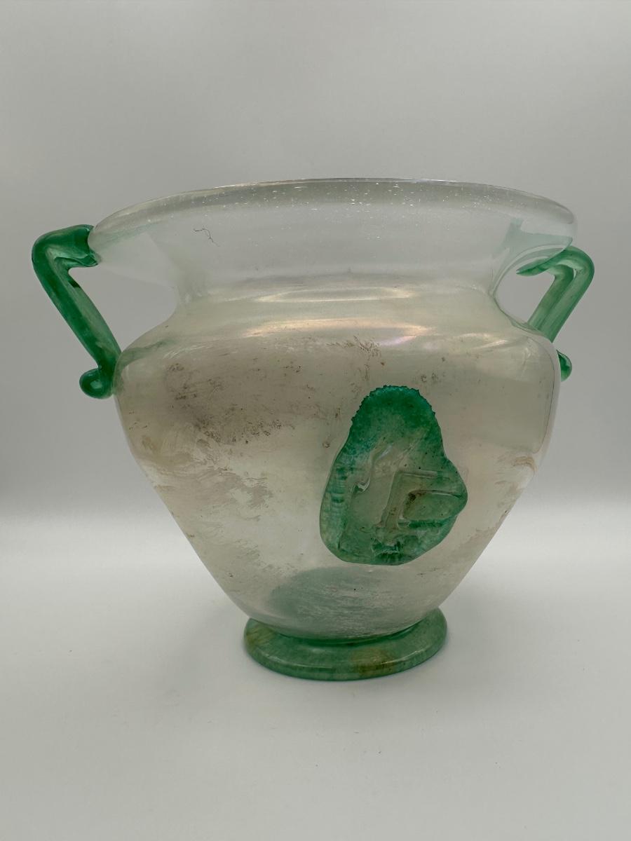 Italian Iridescent Green Blown Glass Vase