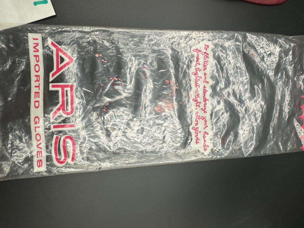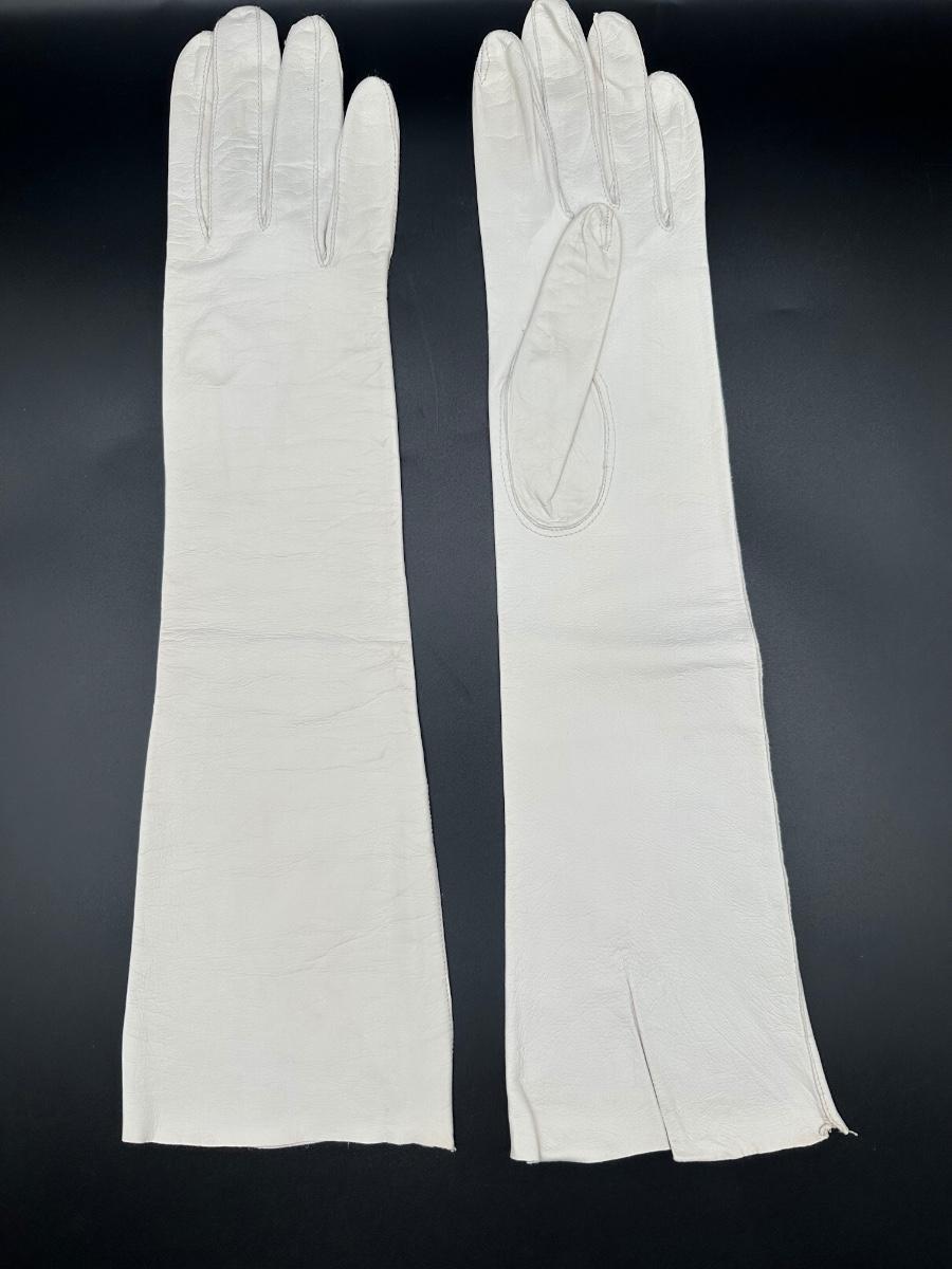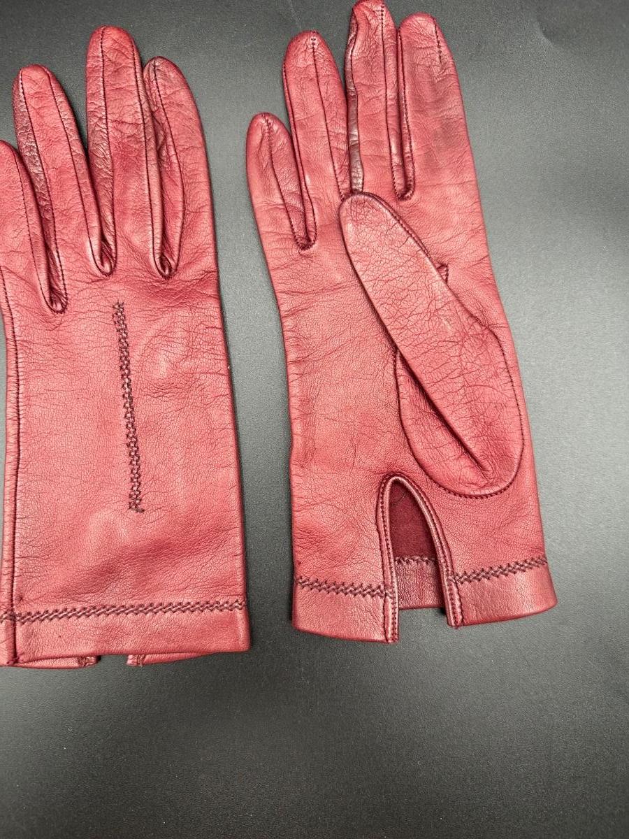 One is fabric and other two are Italian leather. Very small, size 6.5. Leather gloves were bought in Italy and never worn.