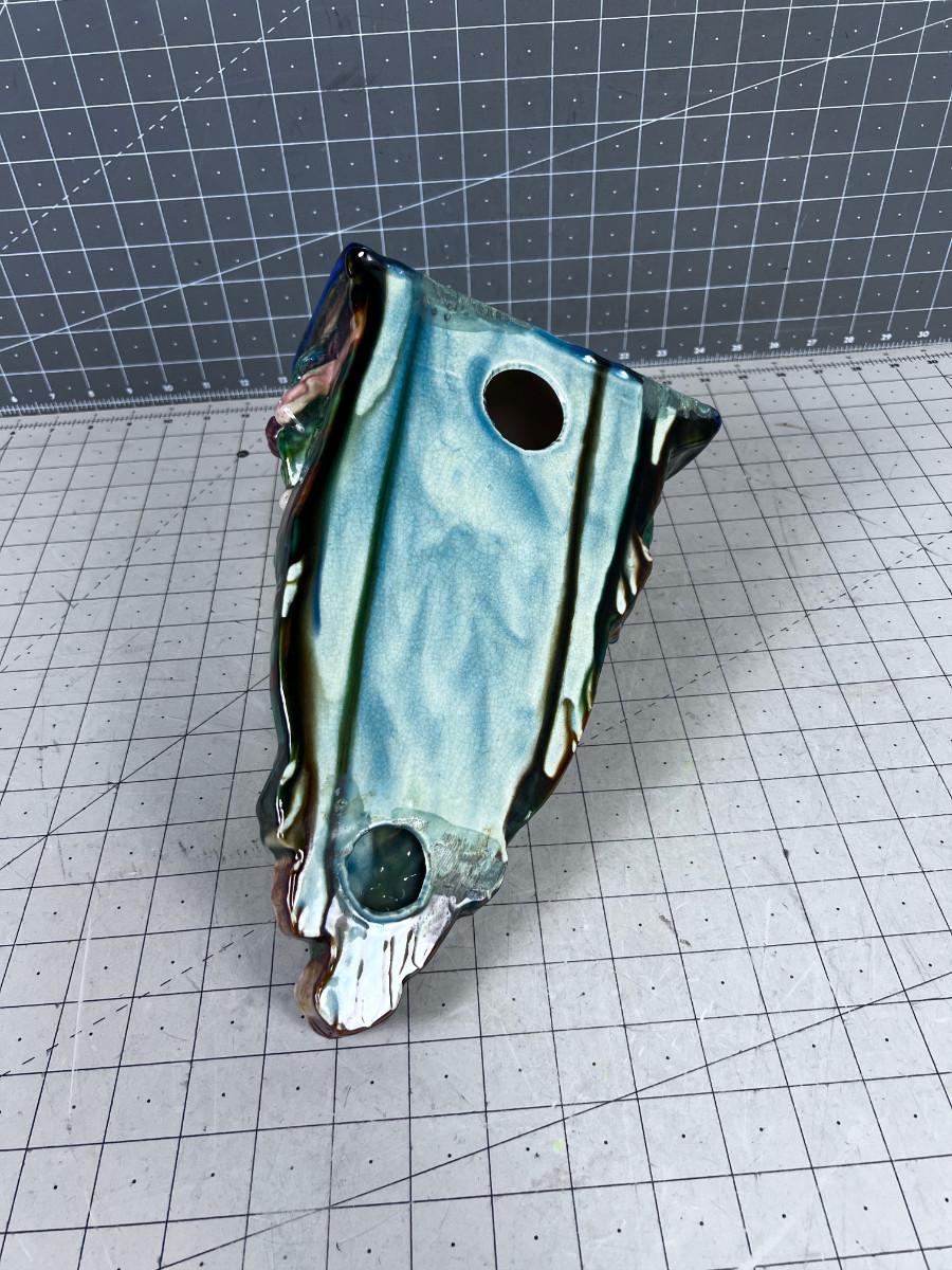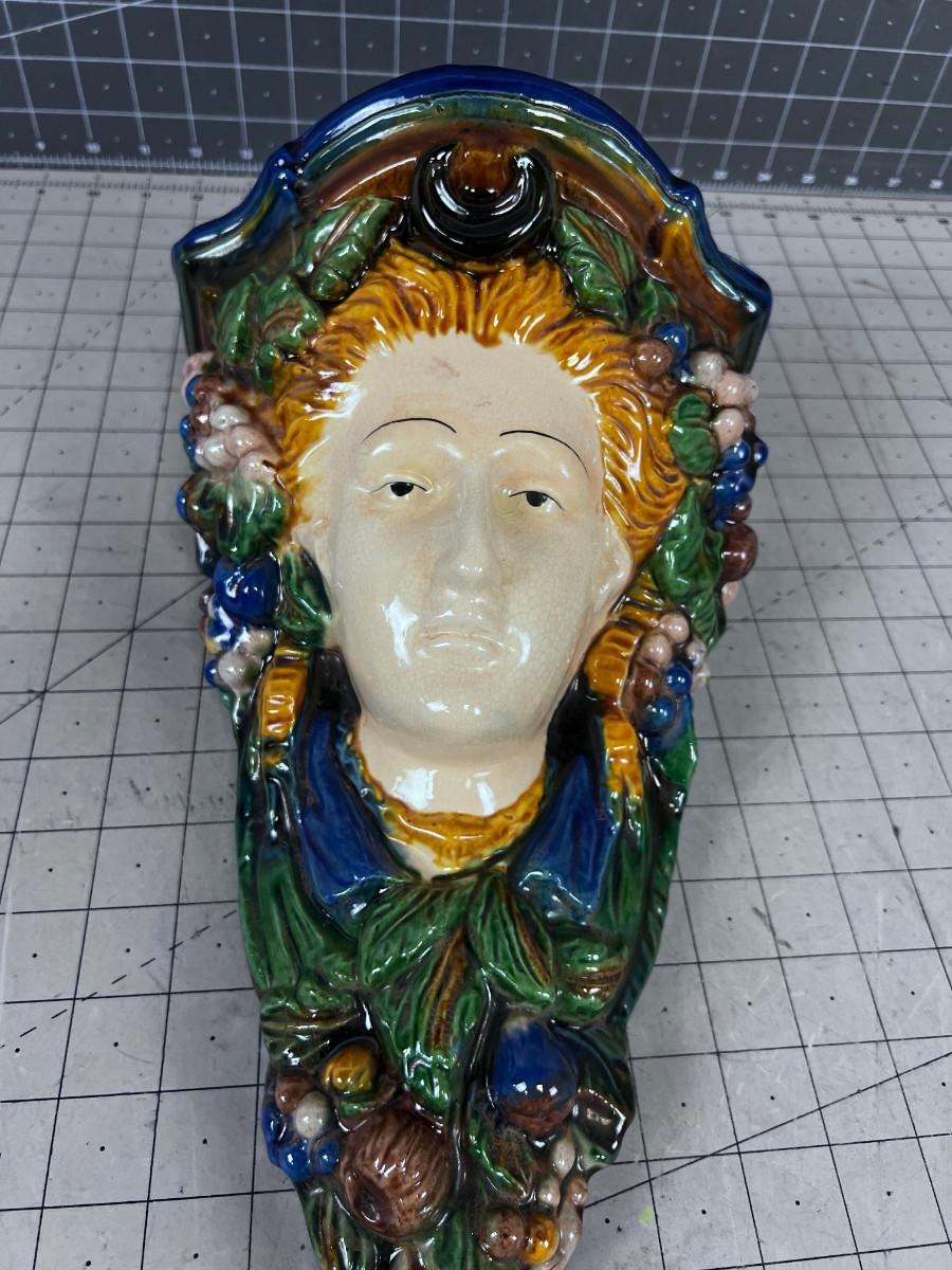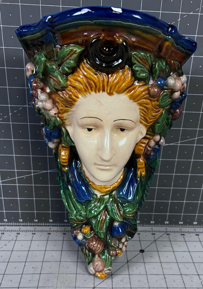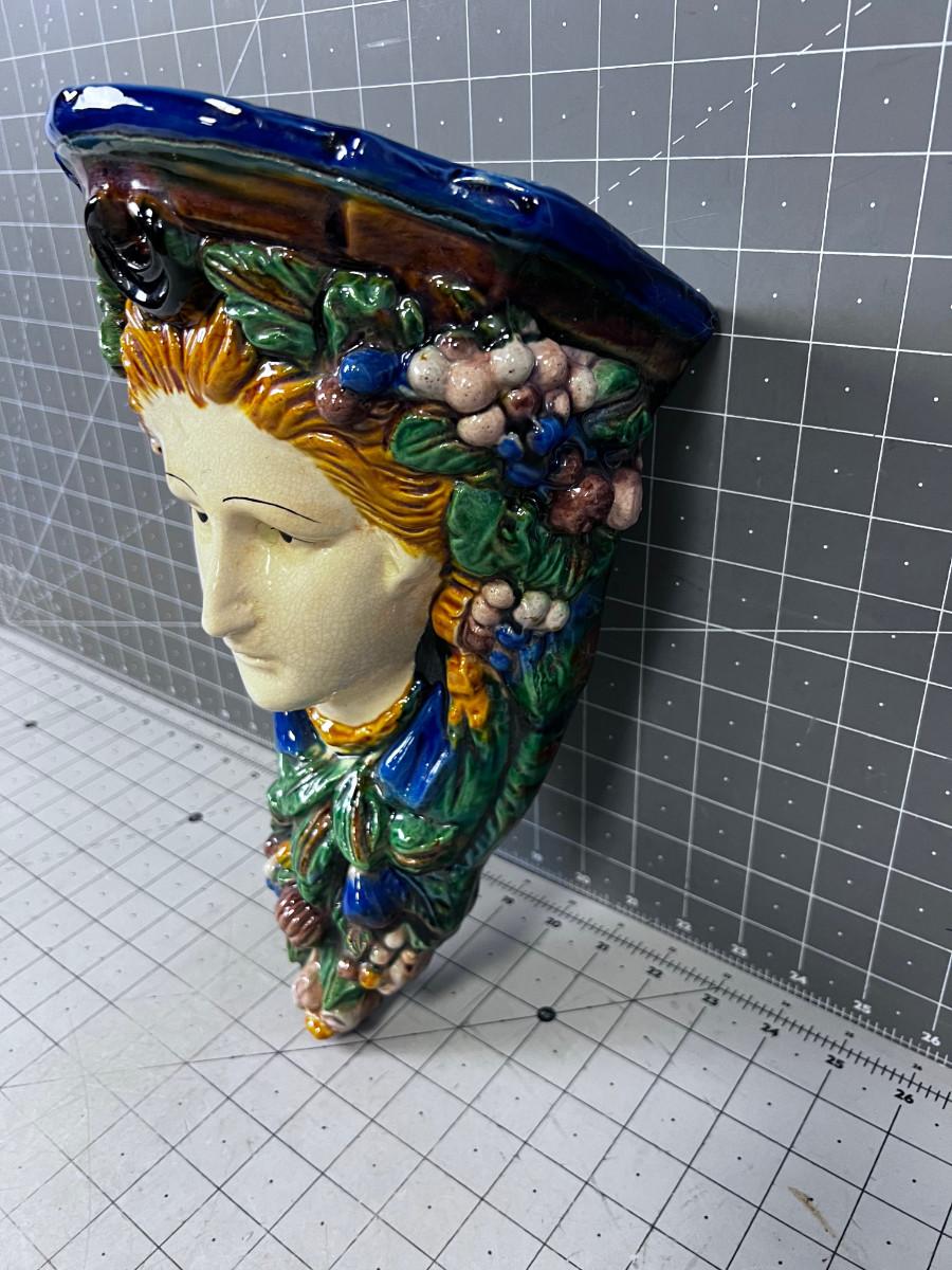 Italian Majolica Wall Shelf, Blue Green