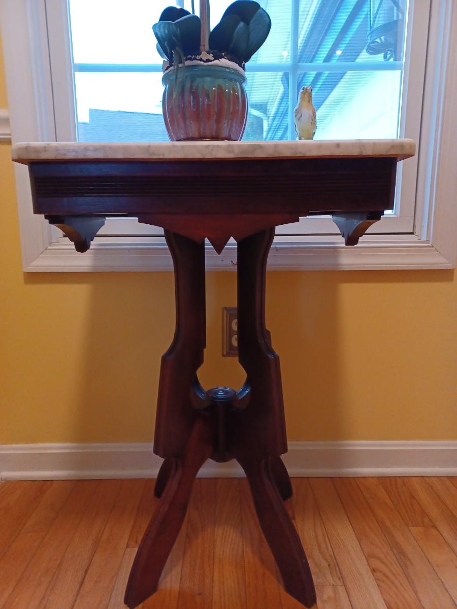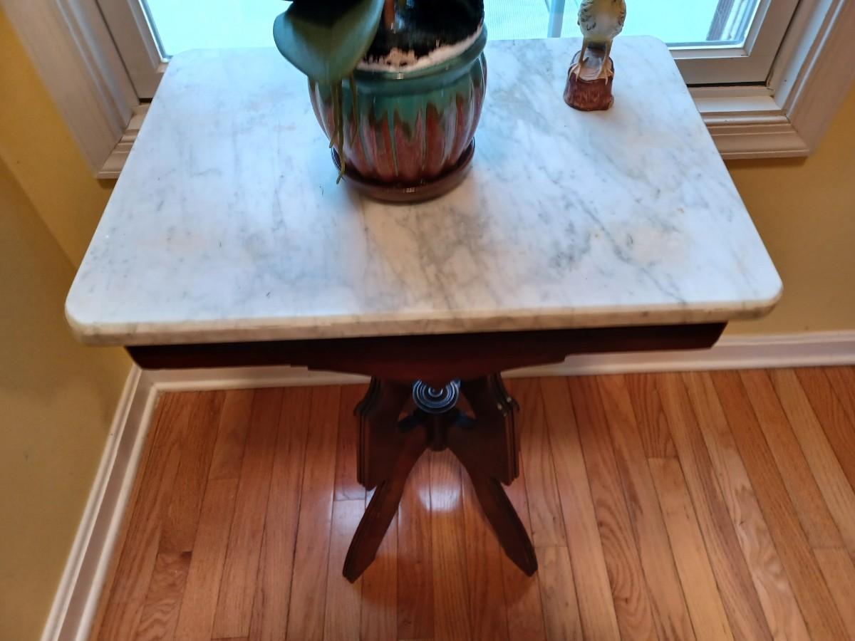 Italian Marble Top Carved Mahogany Side Table