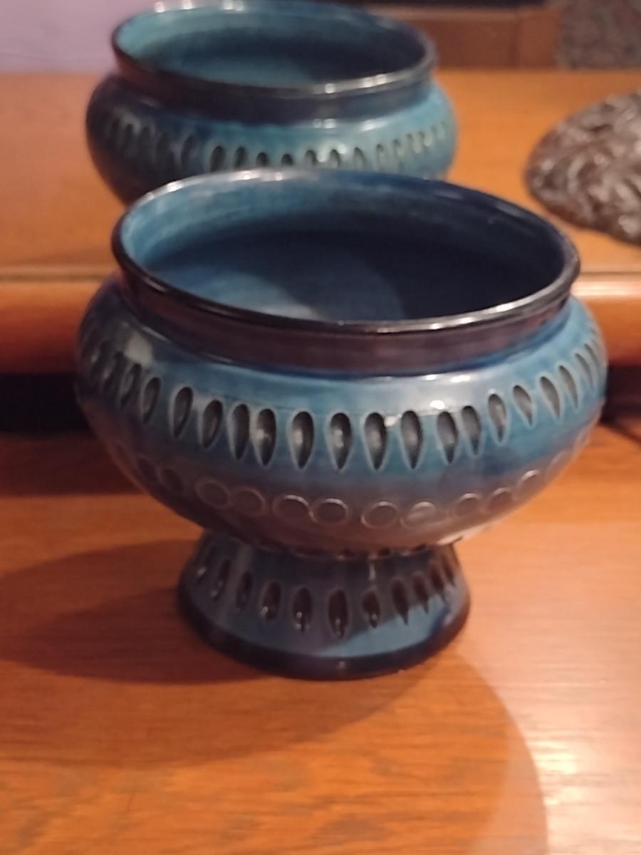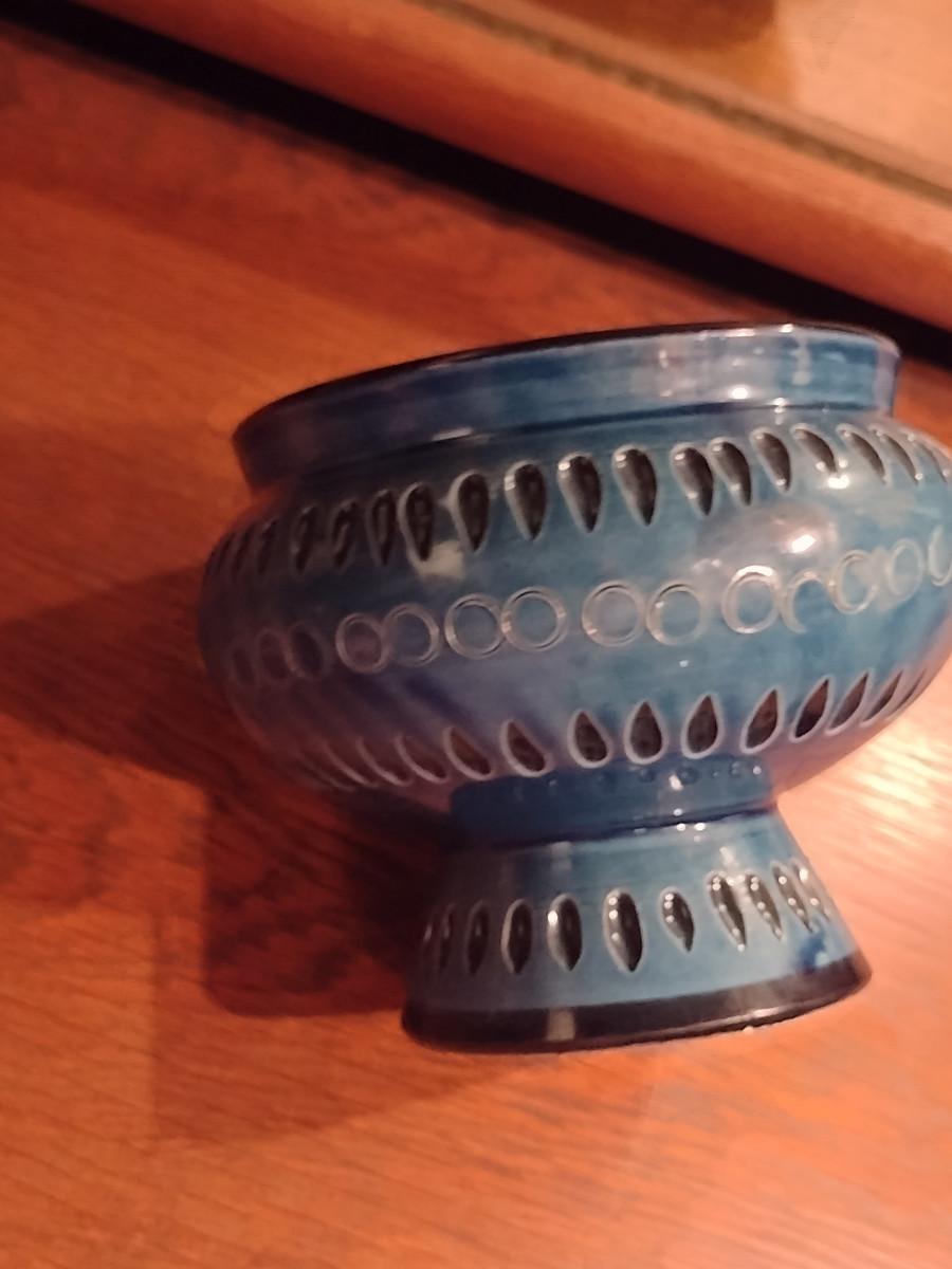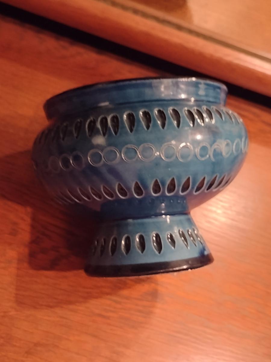 Italian MCM Style Painted Ceramic Pedestal Bowl