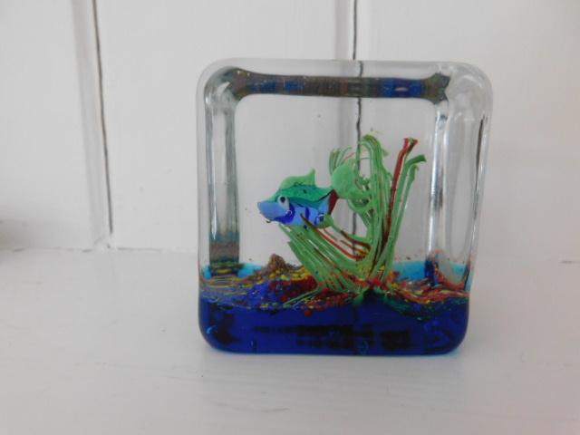 Italian Murano Glass Aquarium Paperweight 3"x3"