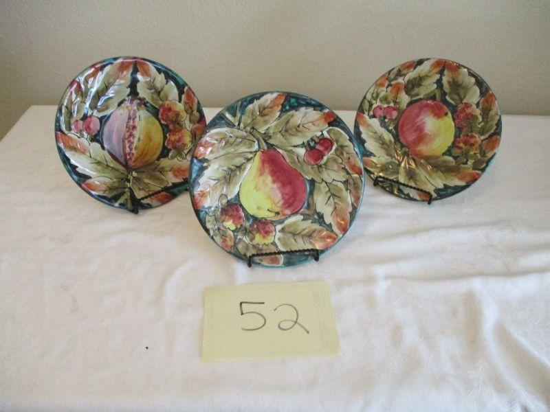 3 Italian decorative ceramic salad plates