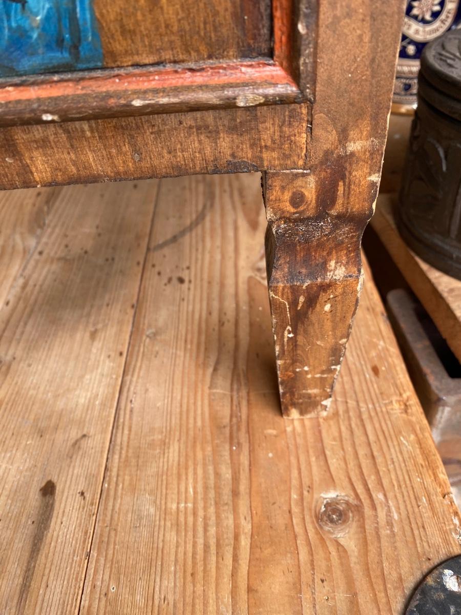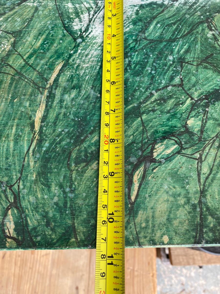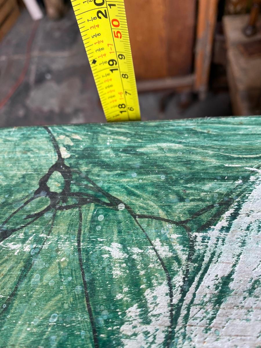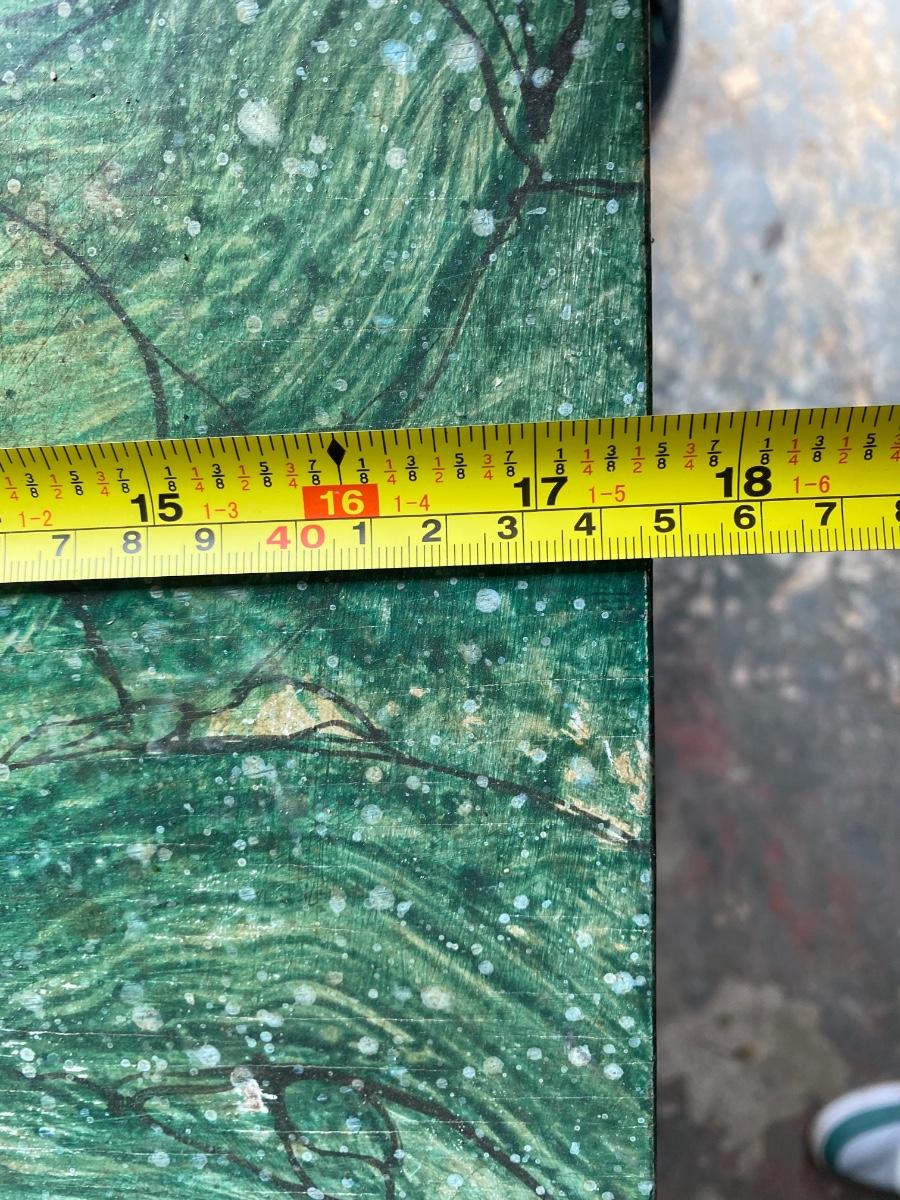 Top is painted to look like green marble. Sides are painted to look like open shelves full of interesting objects!