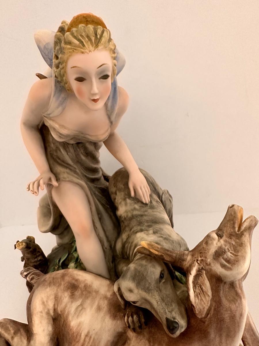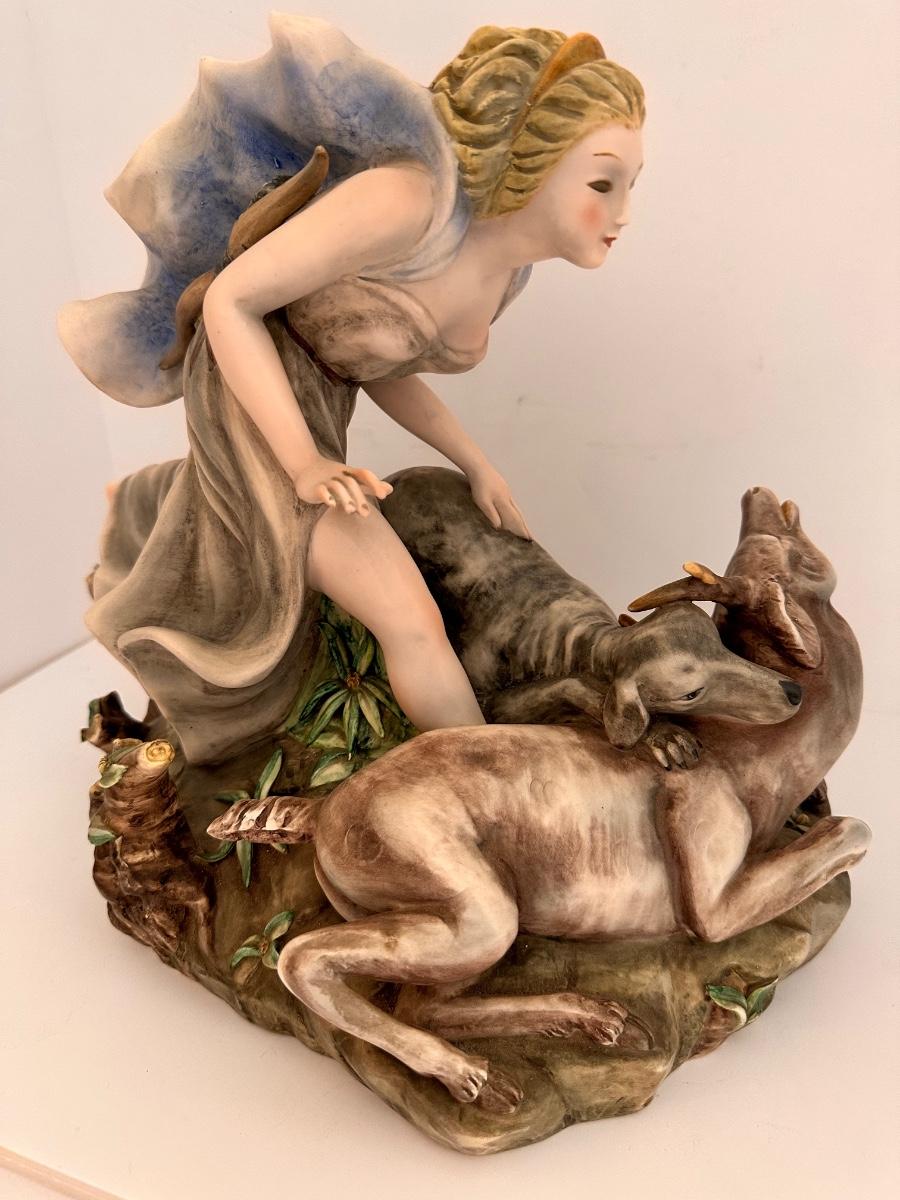 Female Archer With Buck and Dog Signed 2/16 Italy 11Tx14W