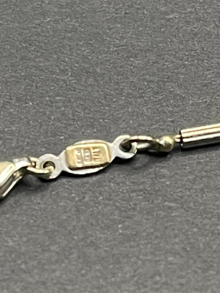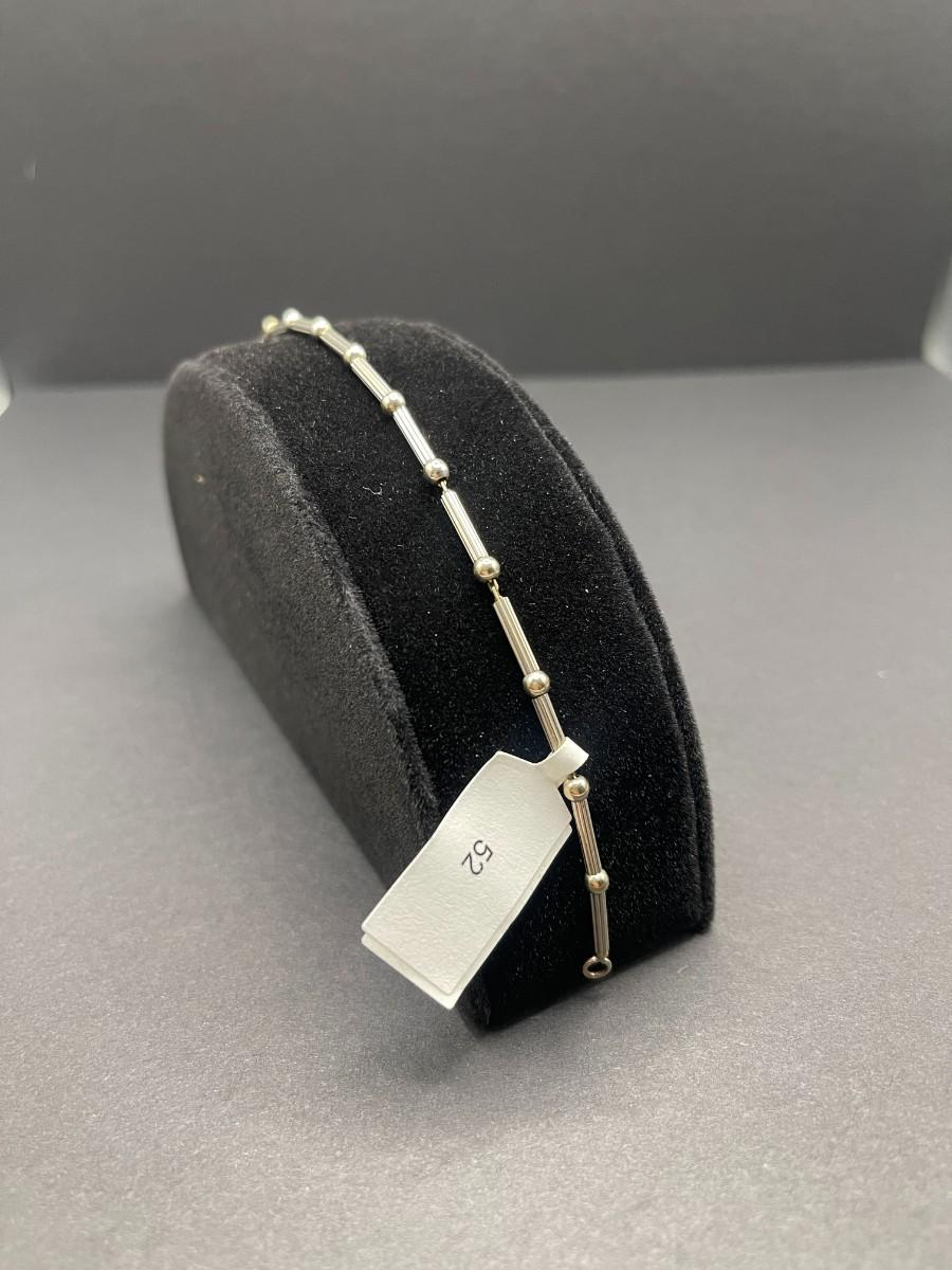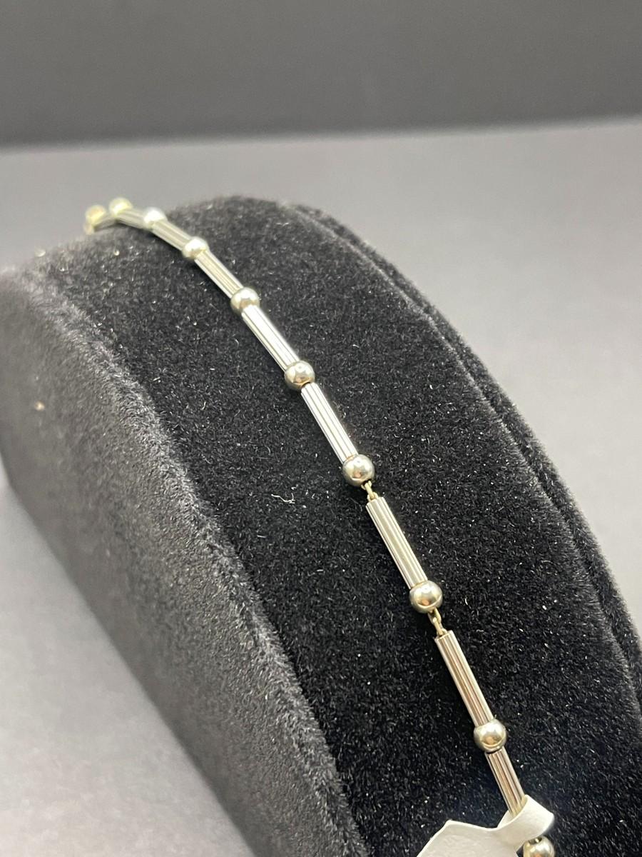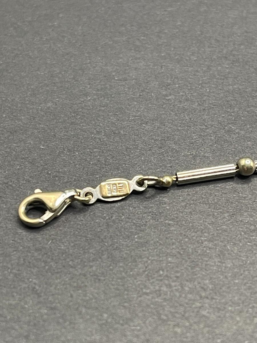 Italian white and yellow 14K gold tube and bead link bracelet. Unbranded. Marked Italy 14K. 7 1/4". Chain is a bit stretched.