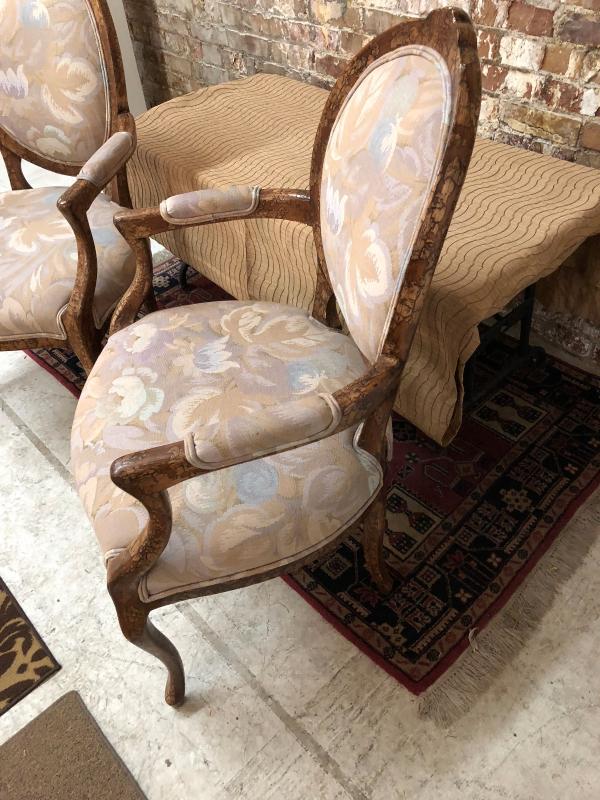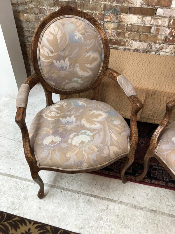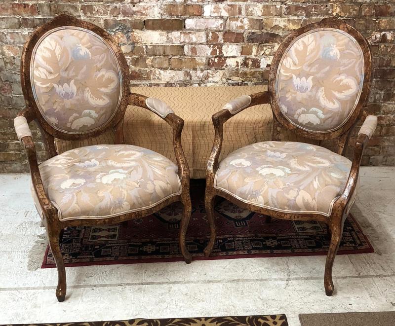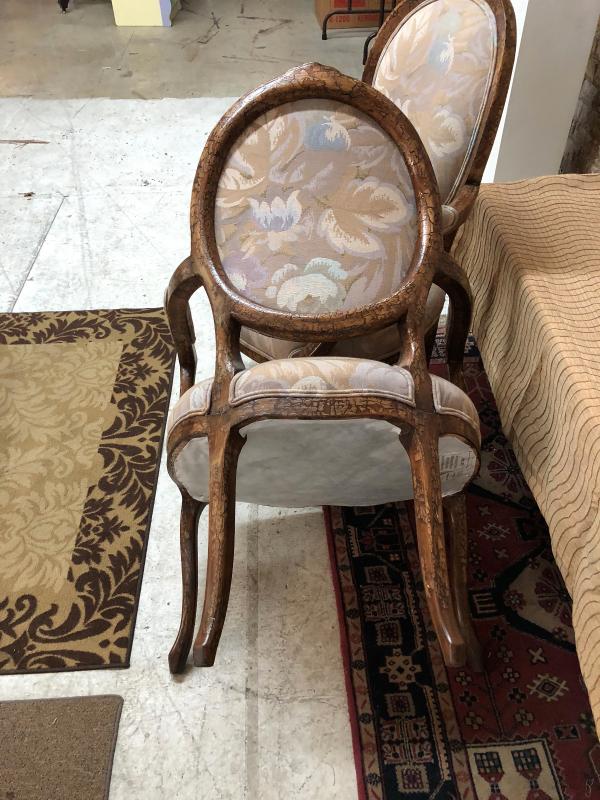 Chair are in good condition, 4 years old, new retail was $1200 for the pair!! Nicely worked crackle finish, some small chipping on the top edge of one chair.