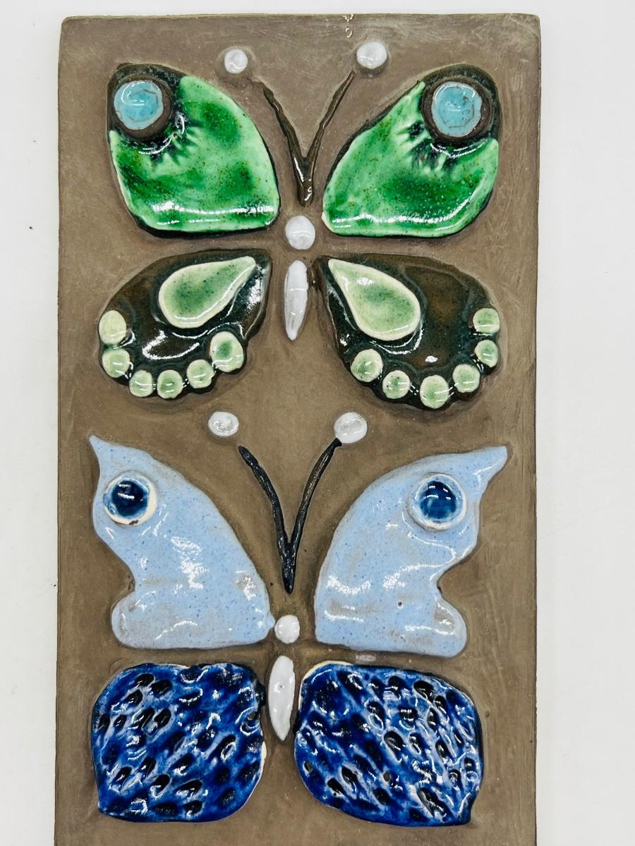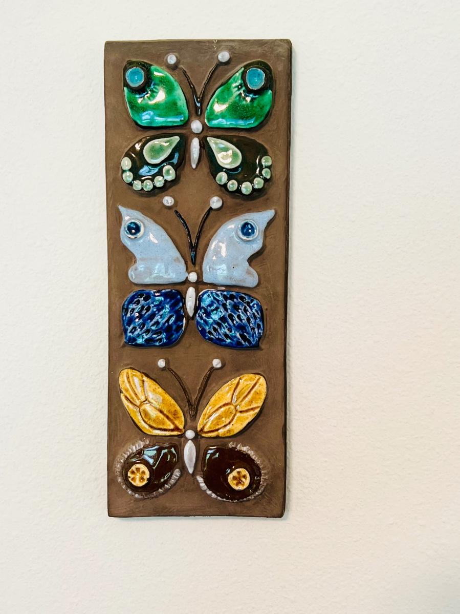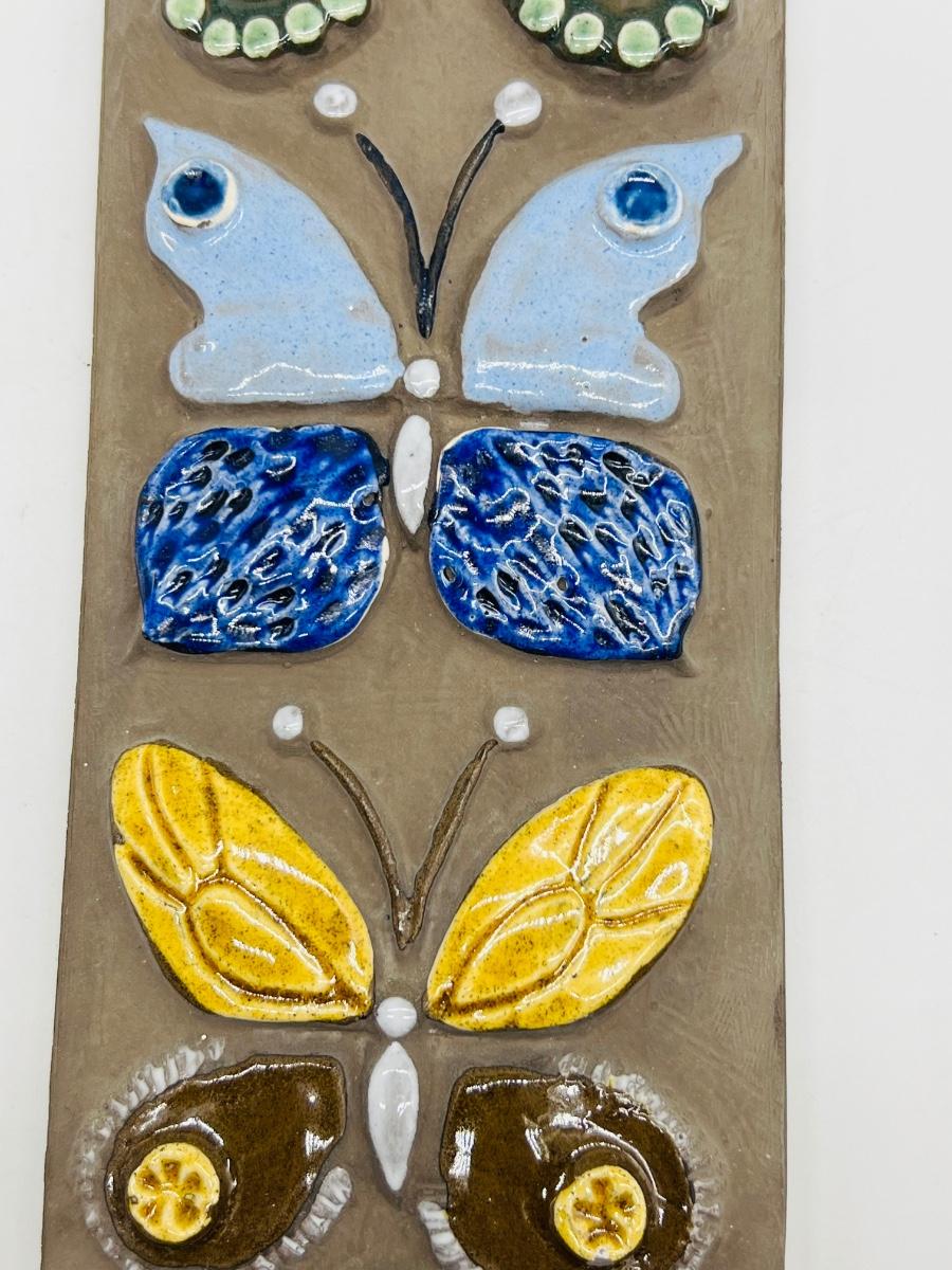 Scandinavianthings JIE Sweden 778 Butterfly ceramic wall hanger. Measures 11 1/2 inches tall and 4 1/2 inches wide.