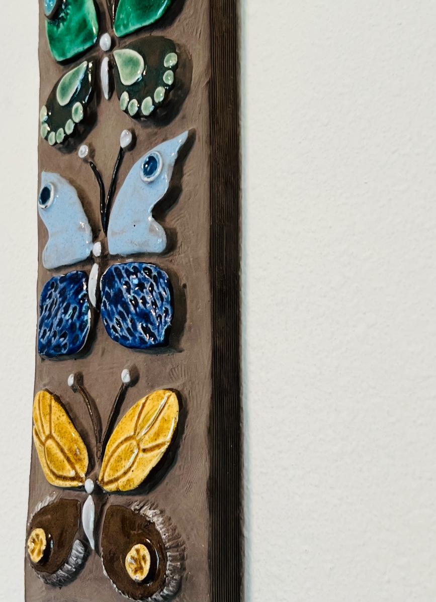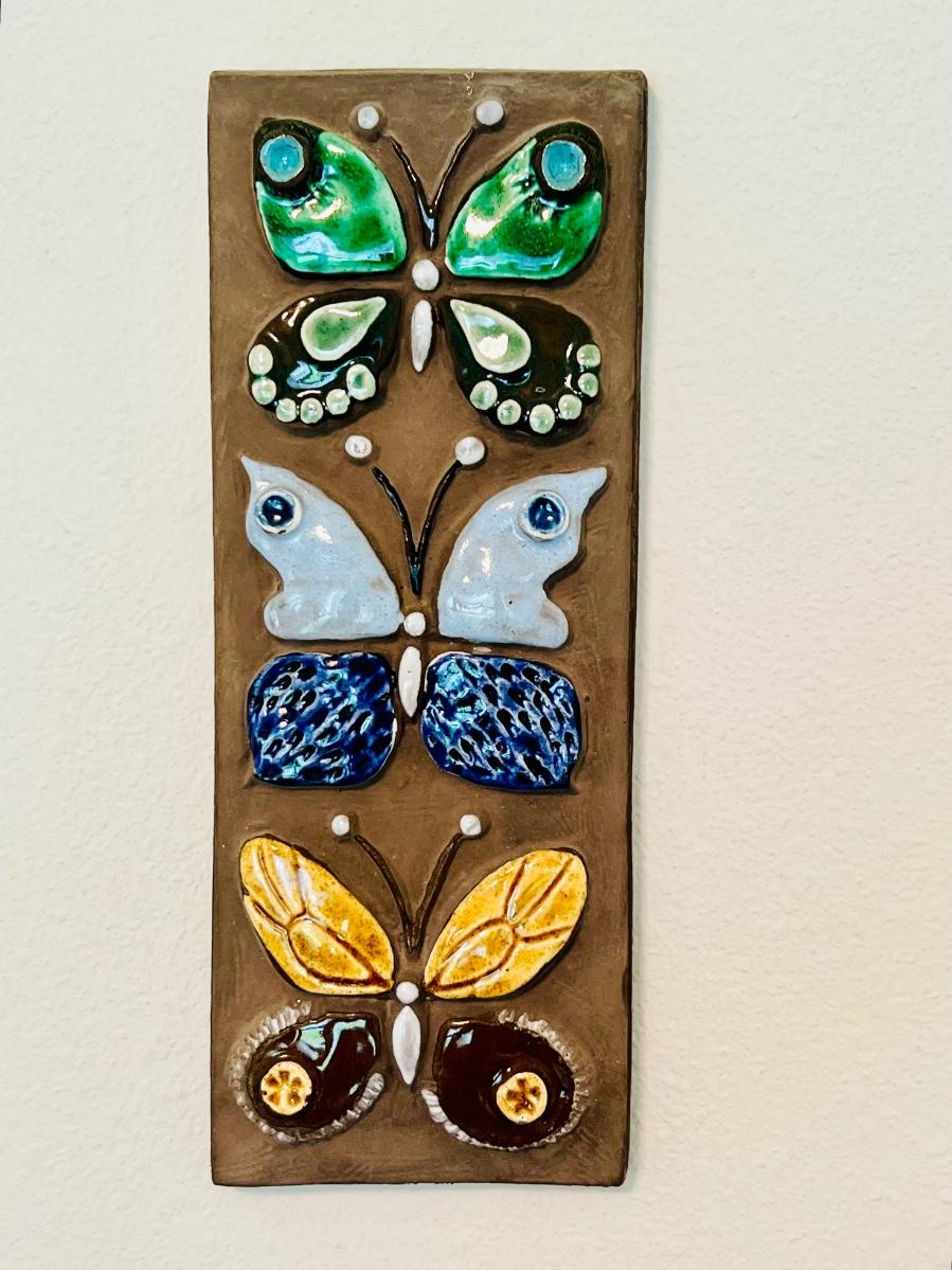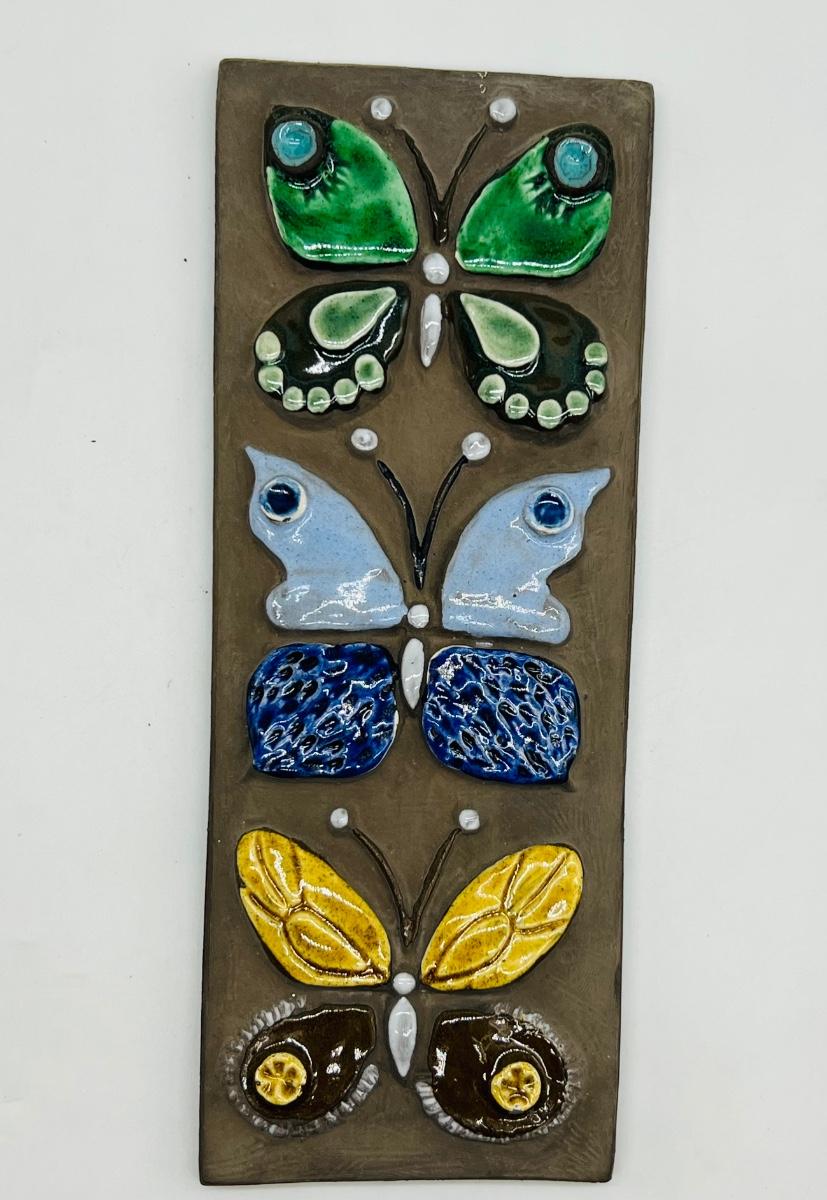 Scandinavianthings JIE Sweden 778 Butterfly ceramic wall hanger. Measures 11 1/2 inches tall and 4 1/2 inches wide.