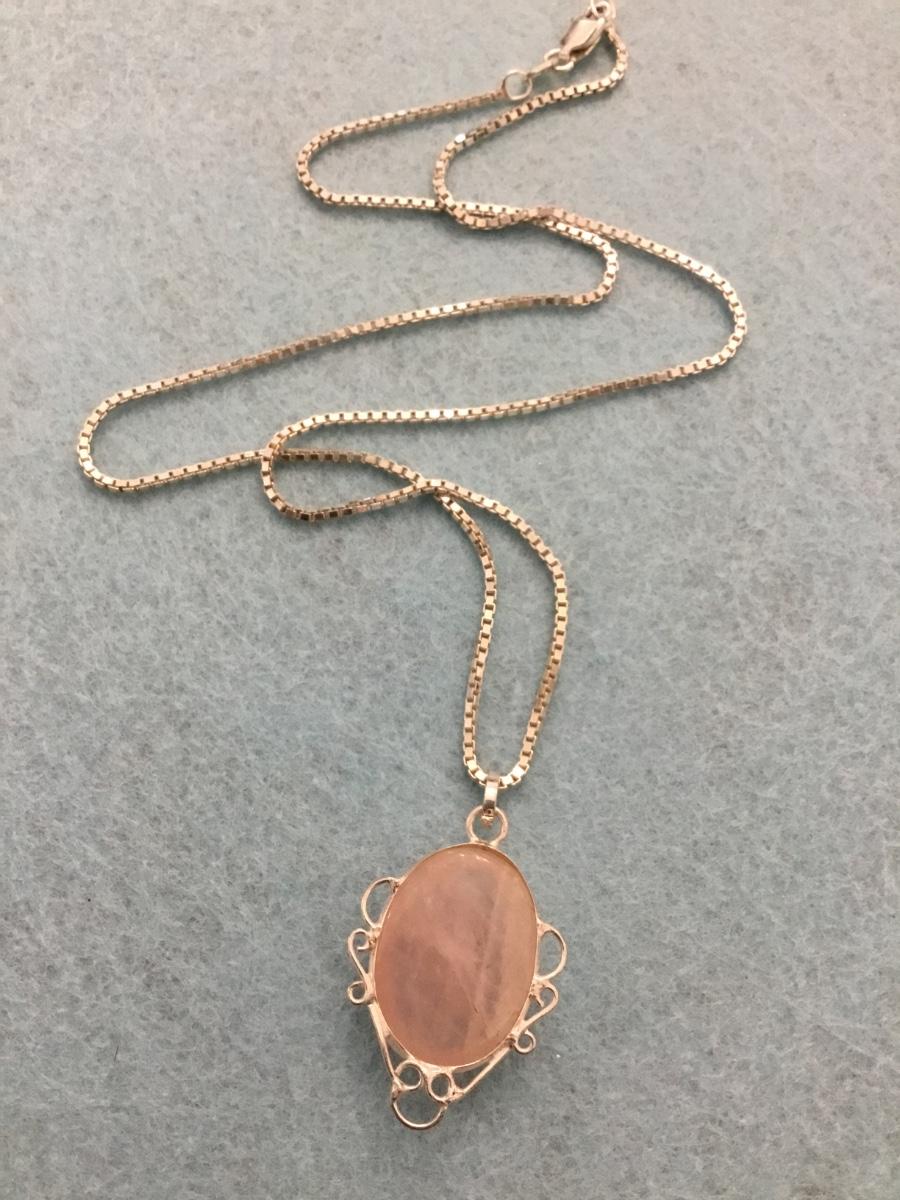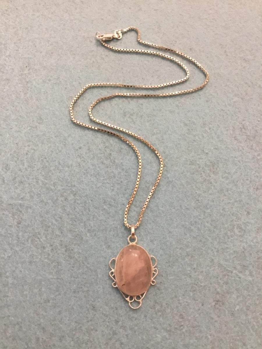 Italy, 925 Rose, clear, quartz, crystal pendant and 925 necklace