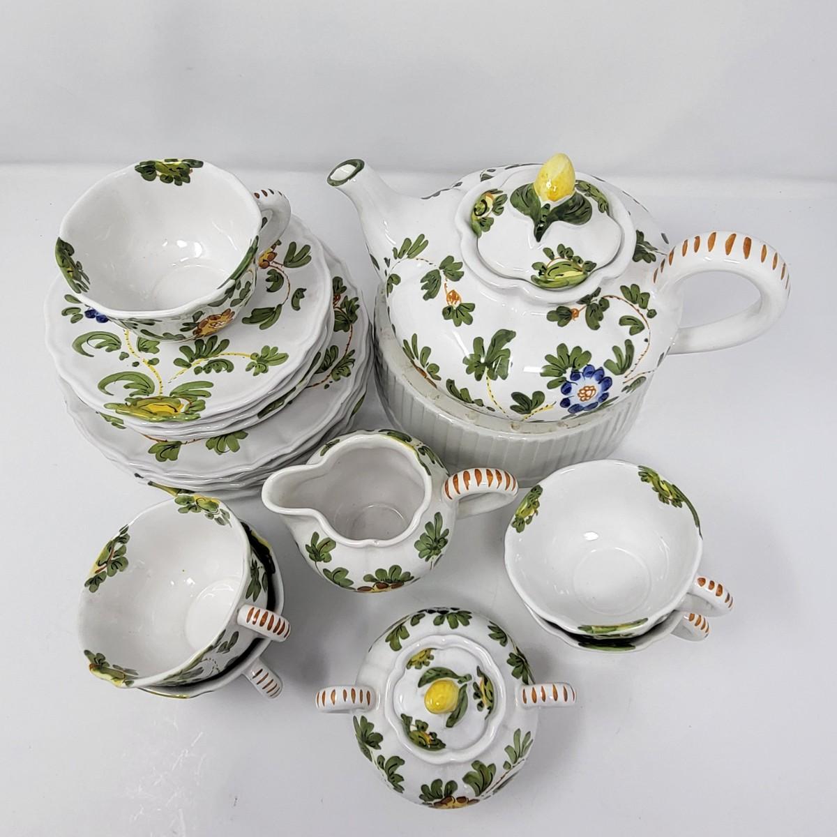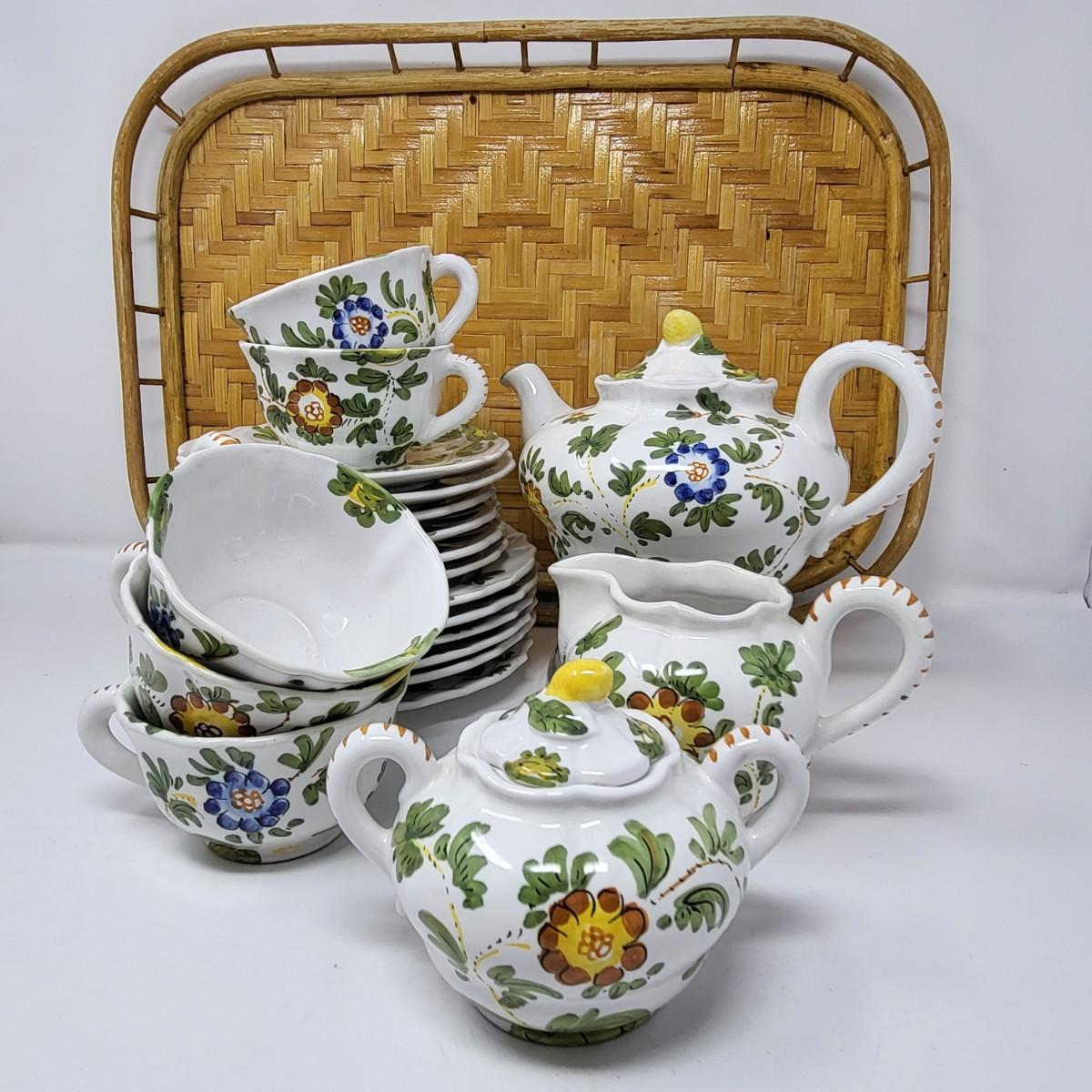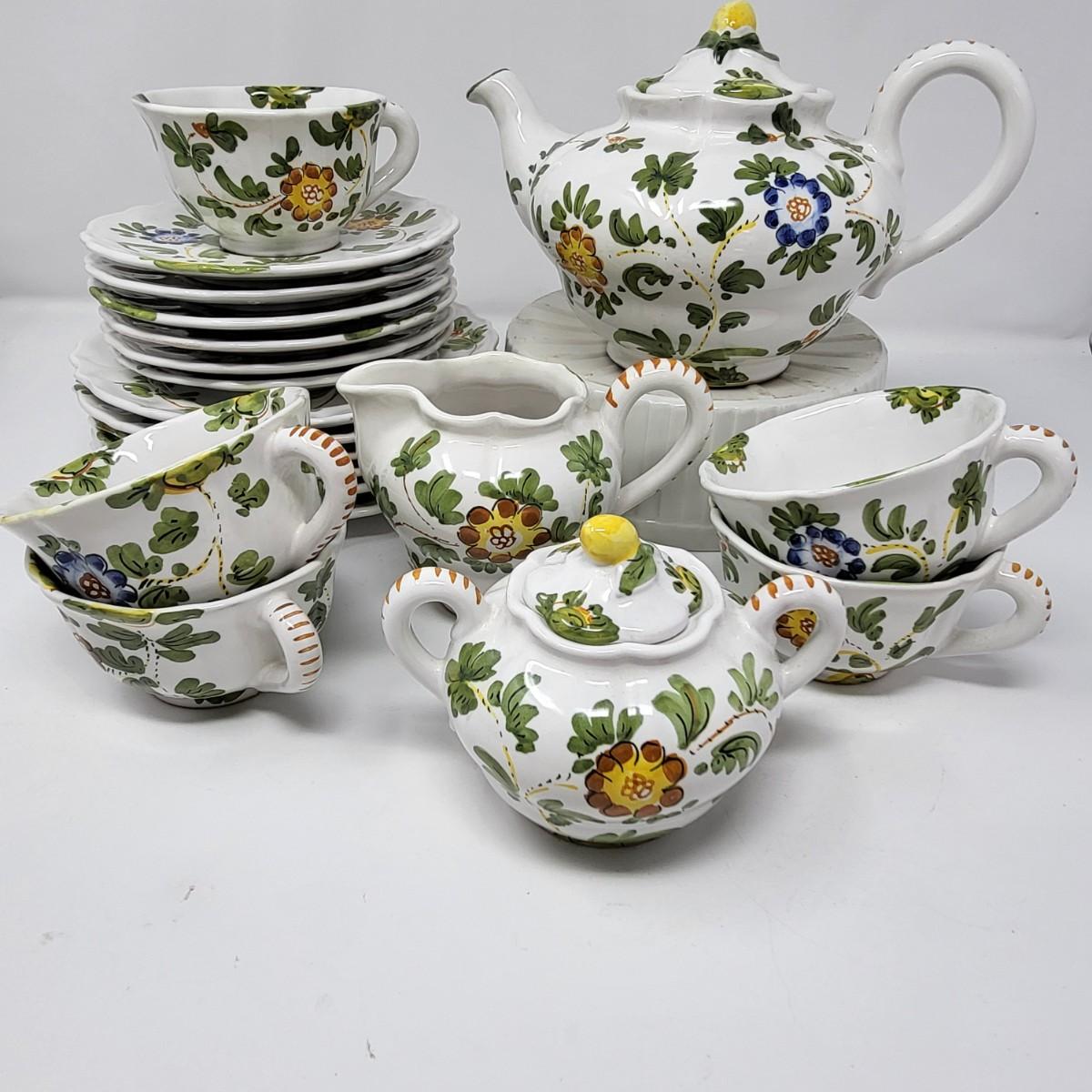 Hand painted, Italy. Tea service for 5 with a few extra pieces.