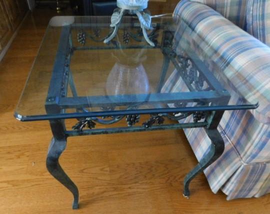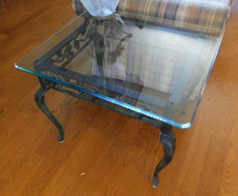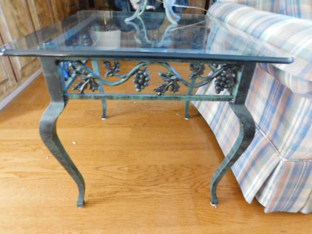 Item 1 of 2 Cast Iron Frame Verdigris Glass Top Lamp Table 28" x 24" x 23"