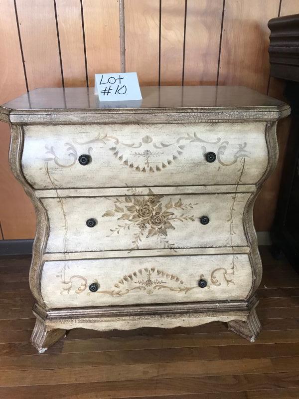 Item #10  Three Drawer Faux Painted Bombay Chest