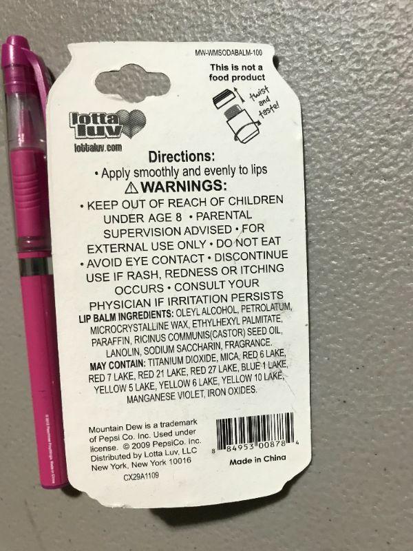 Lotta Luv Mountain Dew MTN Dew Flavored Lip Balm Chap Stick Sealed in Package (item #110)