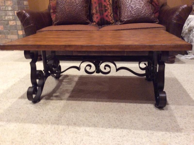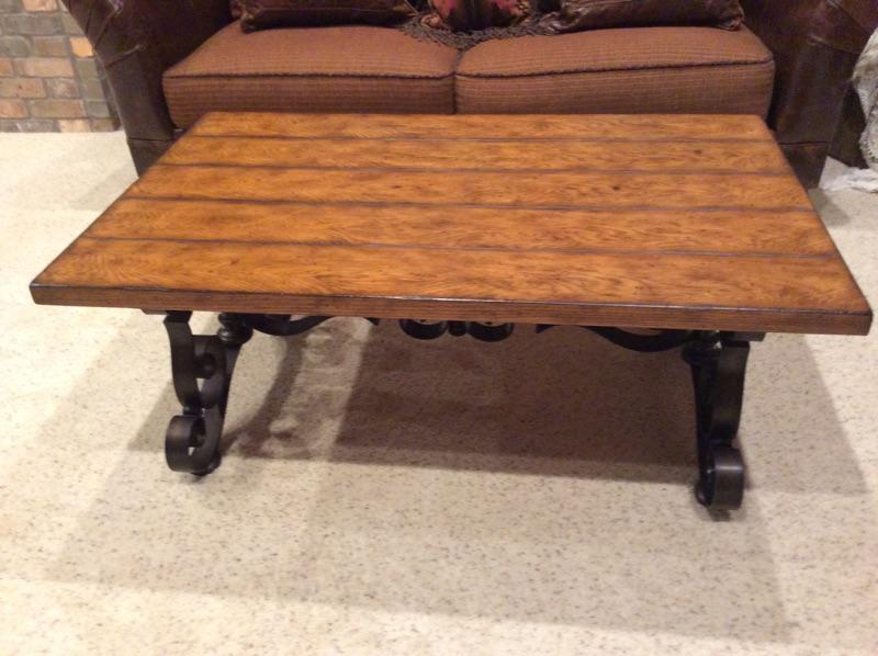 Rustic iron and wood coffee table