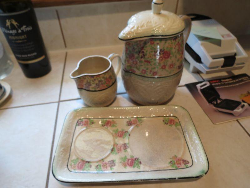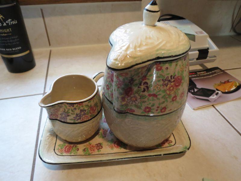 Four Pieces Vintage Japan China Tea Set Teapot with Lid Creamer and Tray Floral Marked - Item # 135