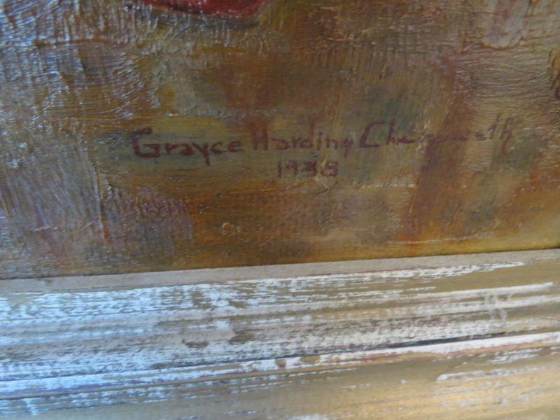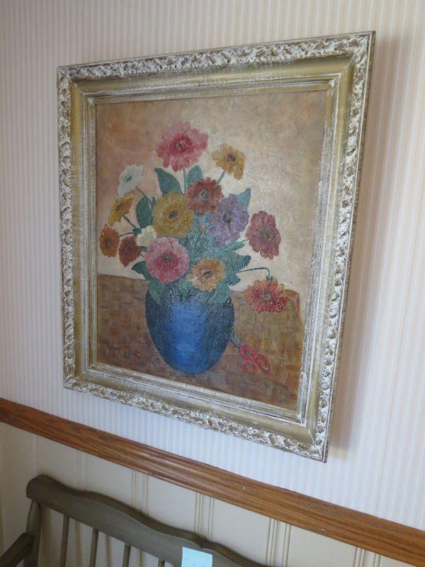 Framed Painting Flowers Blue Vase Painted in 1938 By Grayce Harding Chenoweth - Item # 148
