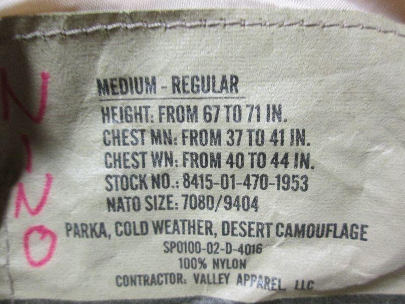 Item 16 -  US Military Cold Weather Parka Desert Camouflage Size Medium Regular