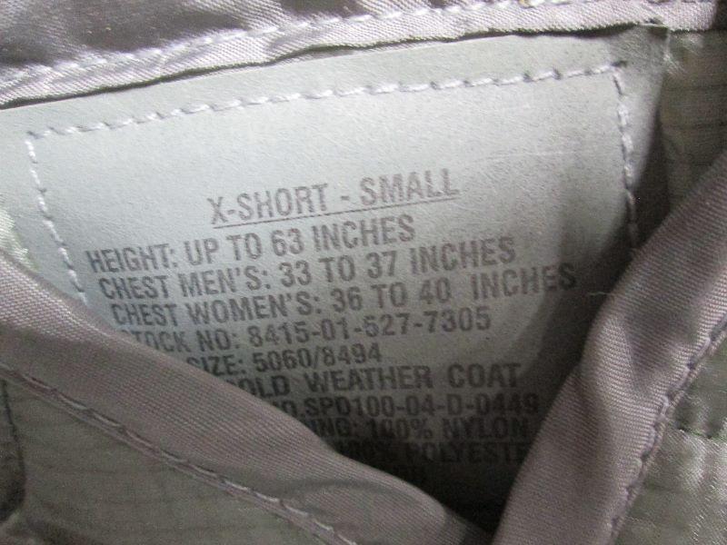 Item 167 - Cold Weather Coat Liner - X Short - Small