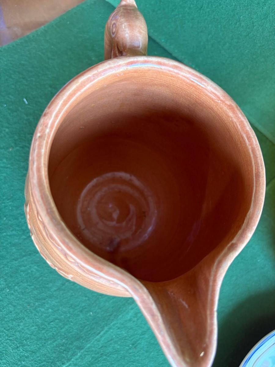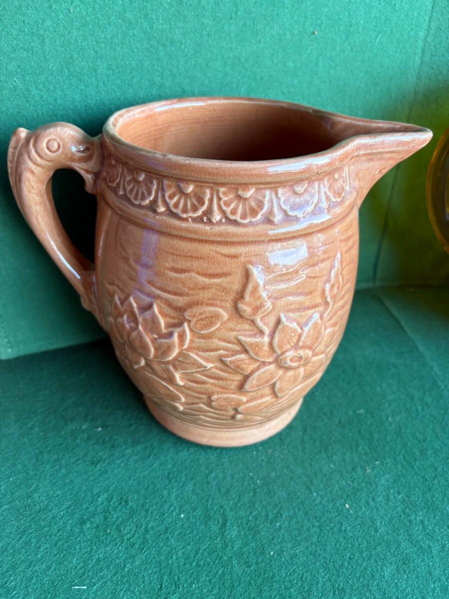 vintage McCoy Pottery “Lily Pad Fish Handle” pitcher
