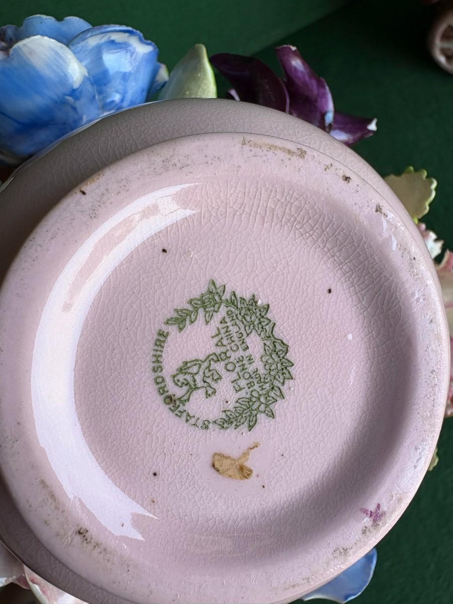 Vtg. Flowerpots and flowers made by Staffordshire, Capodimonte