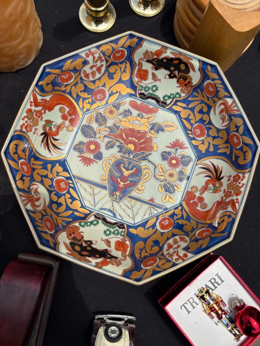 Hayashikuro Kiln Octagonal Bowl Large Golden Arabesque Flower Basket Diagram Ari