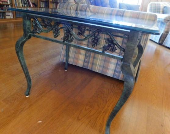 Item 2 of 2 Cast Iron Frame Verdigris Glass Top Lamp Table 28" x 24" x 23"
