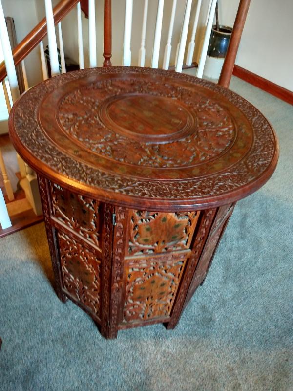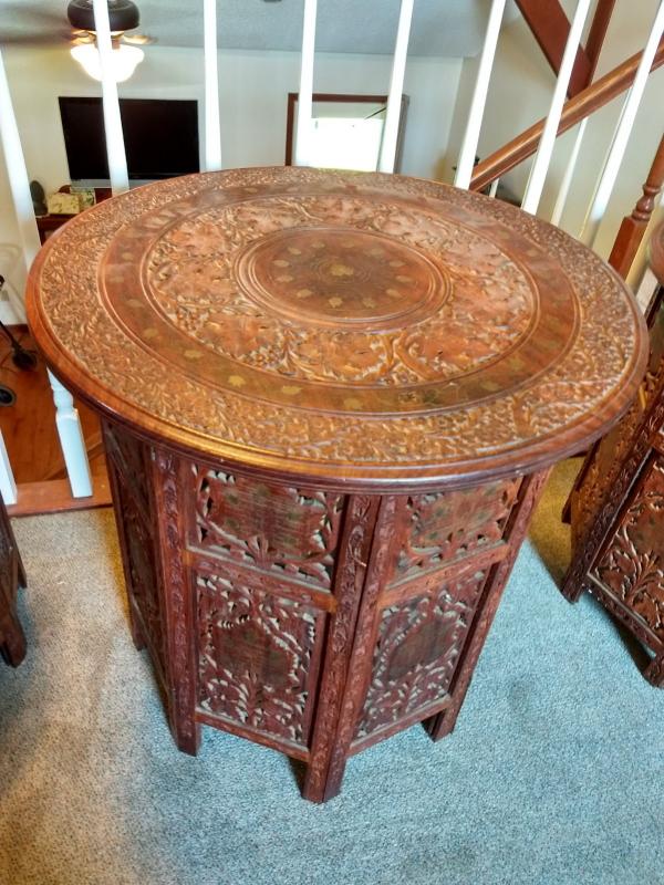 Item 2 of 4 Exotic Wood Hand Carved Two Piece Pacific Island Side Tables 19x19