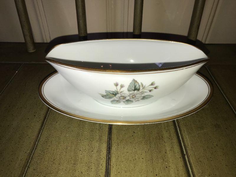 Vintage 5463 by Nortake China Gravy Boat with attached Underplate - Item #206