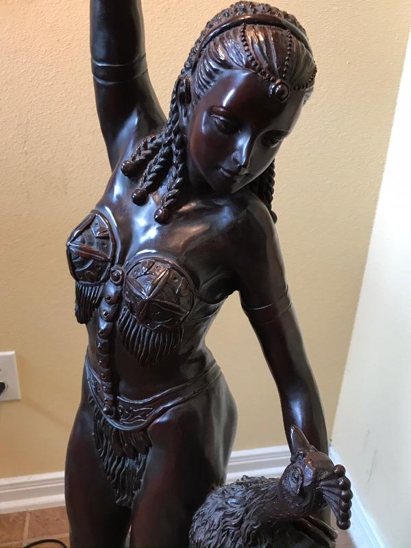 Viking lady with peacock. Tail lights up as well.