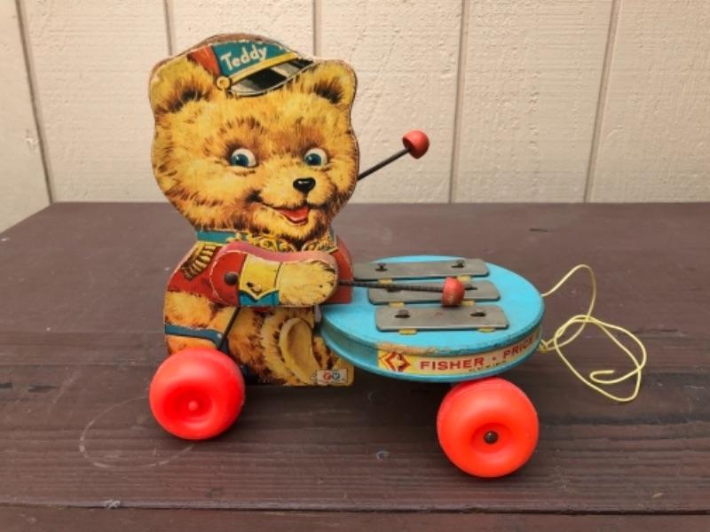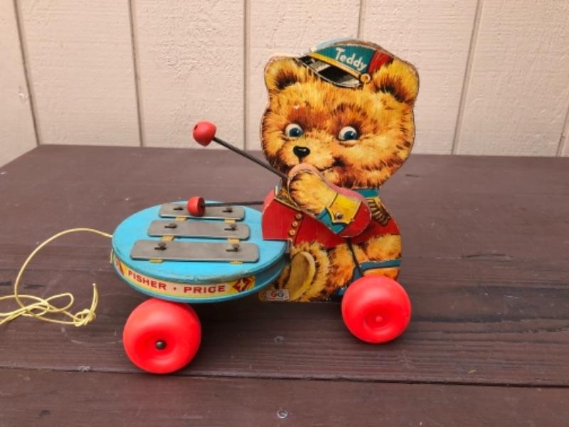 Lot 240: Teddy #741: Fisher Price Toys, Pull and Play, Large Bear Playing Circle Xylophone