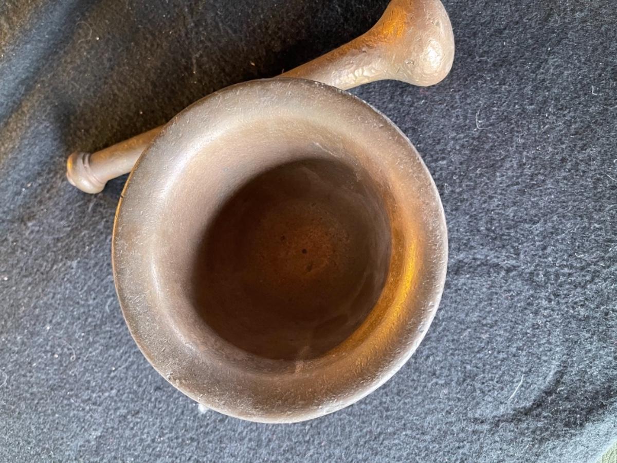 Item 25. Mortar and Pestle, Brass and copper, heavy, country of origin Peru, circa 1800’s