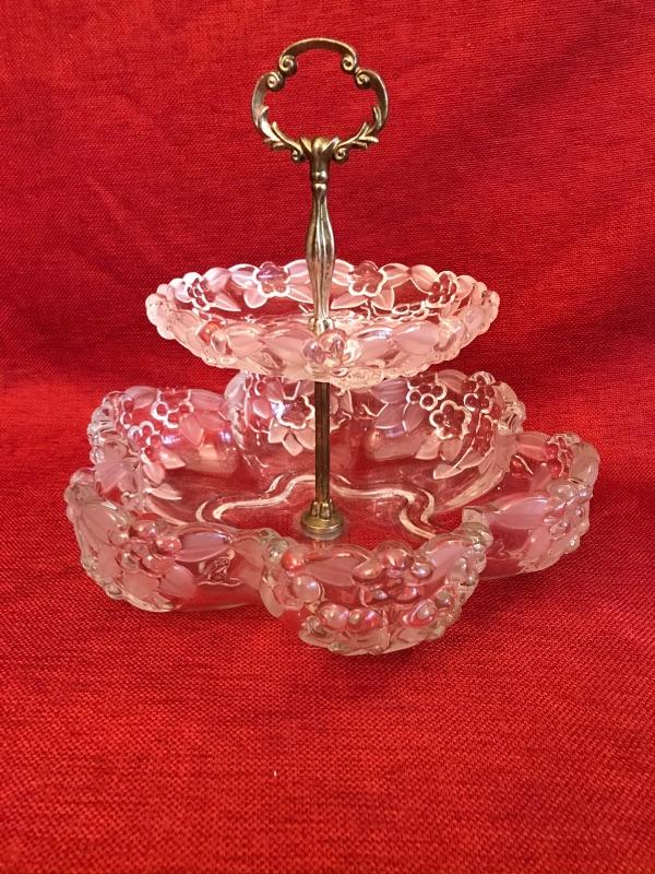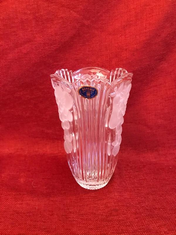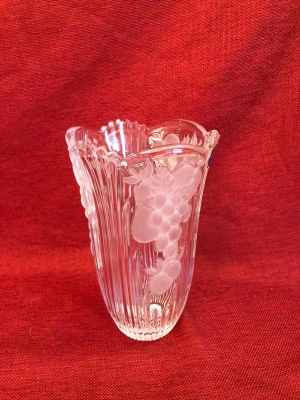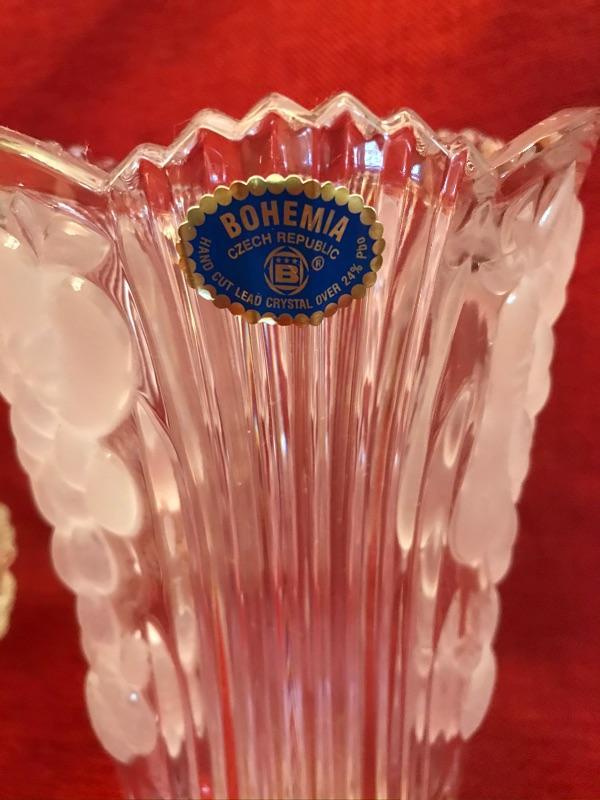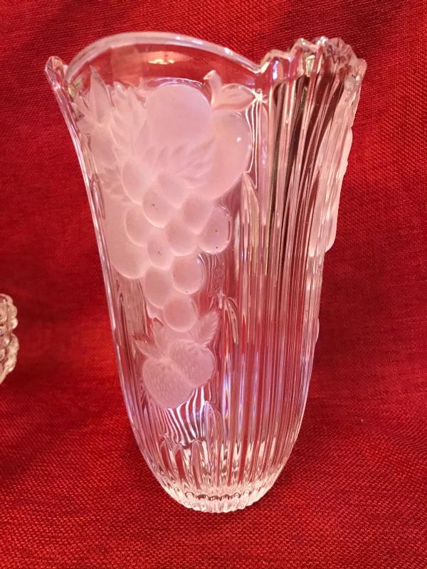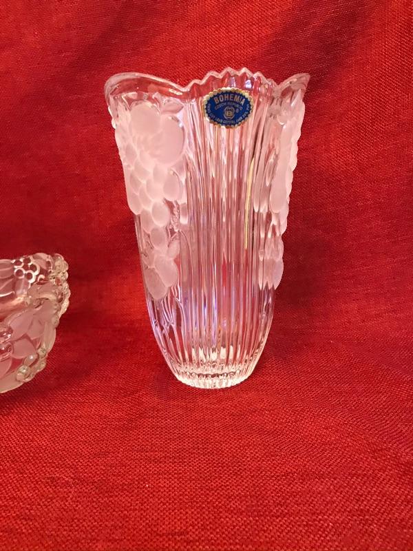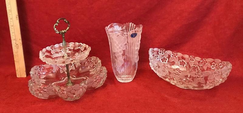 3 piece Grape design crystal vase and serving lot. Bohemian Czech Republic. 24% hand cut crystal