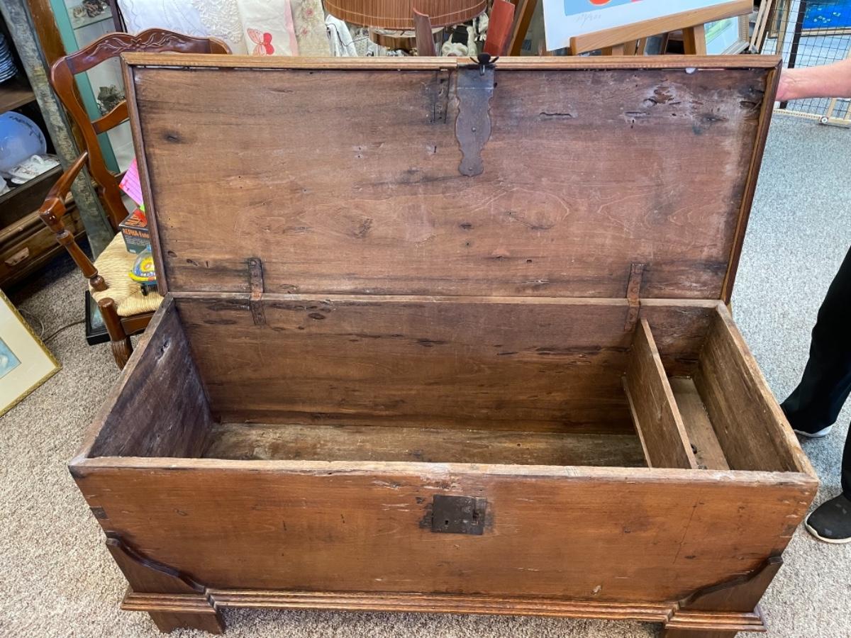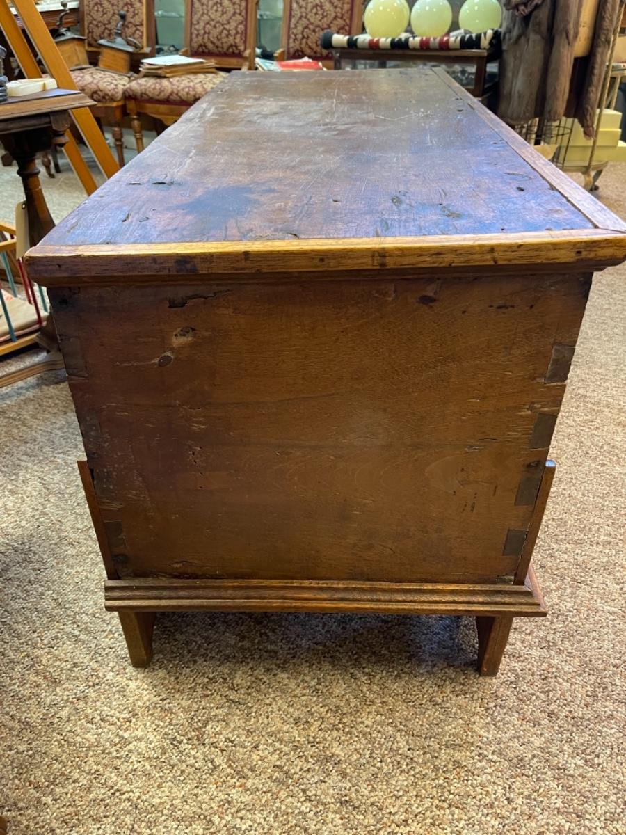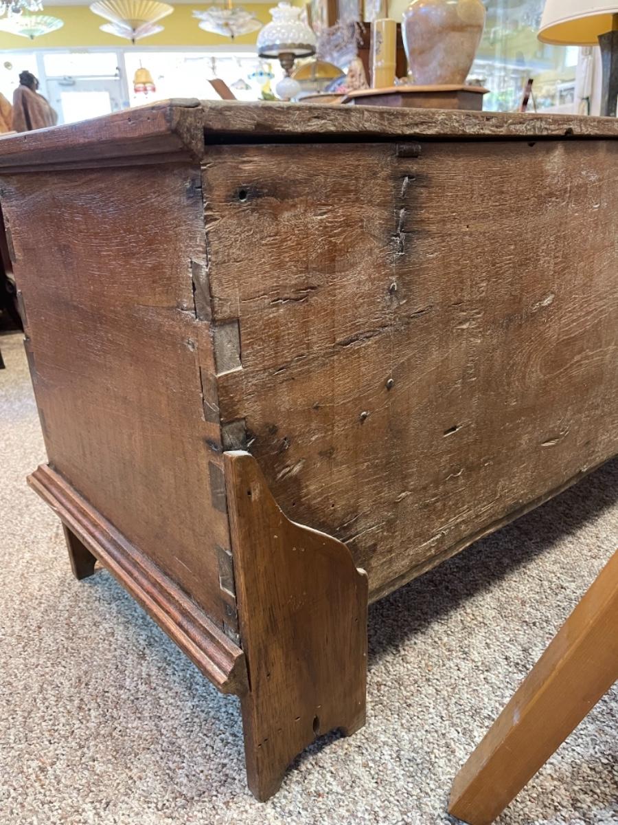 Item 3. Large Antique  18-19th Century Brazilian Voyage/Sea/Officers Trunk, footed, large dovetail, iron hinges, iron lock and key, possibly walnut or dark pine