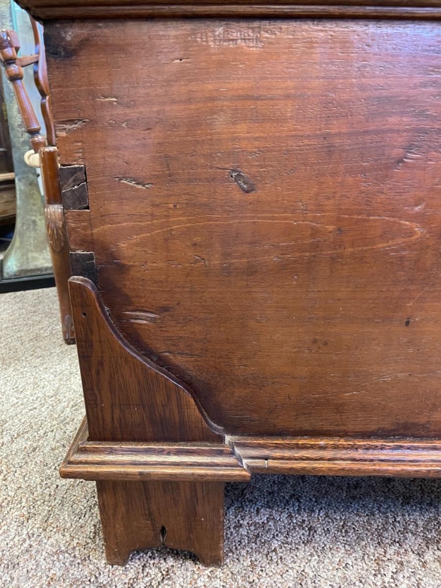 Item 3. Large Antique 18-19th Century Brazilian Voyage/Sea/Officers Trunk, footed, large dovetail, iron hinges, iron lock and key, possibly walnut or dark pine