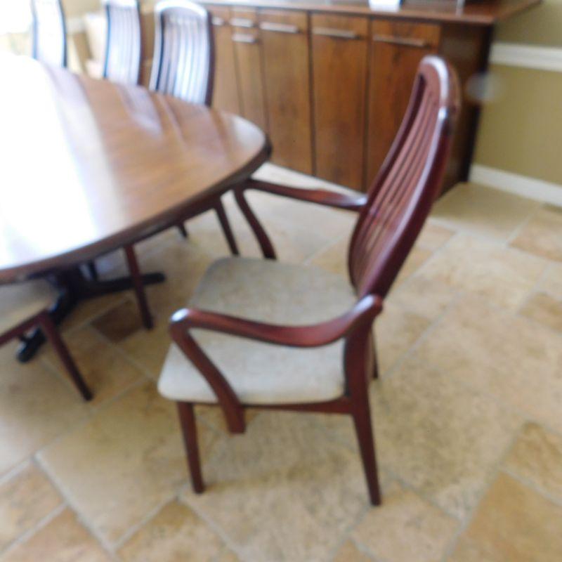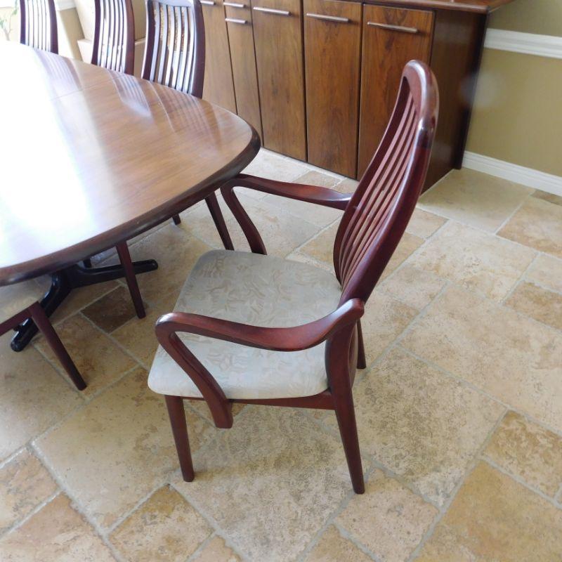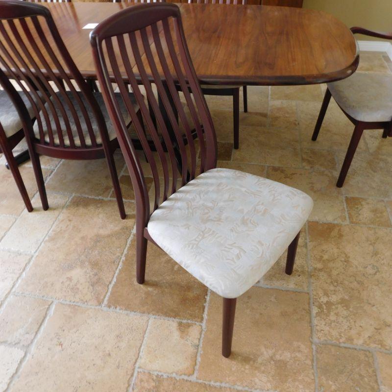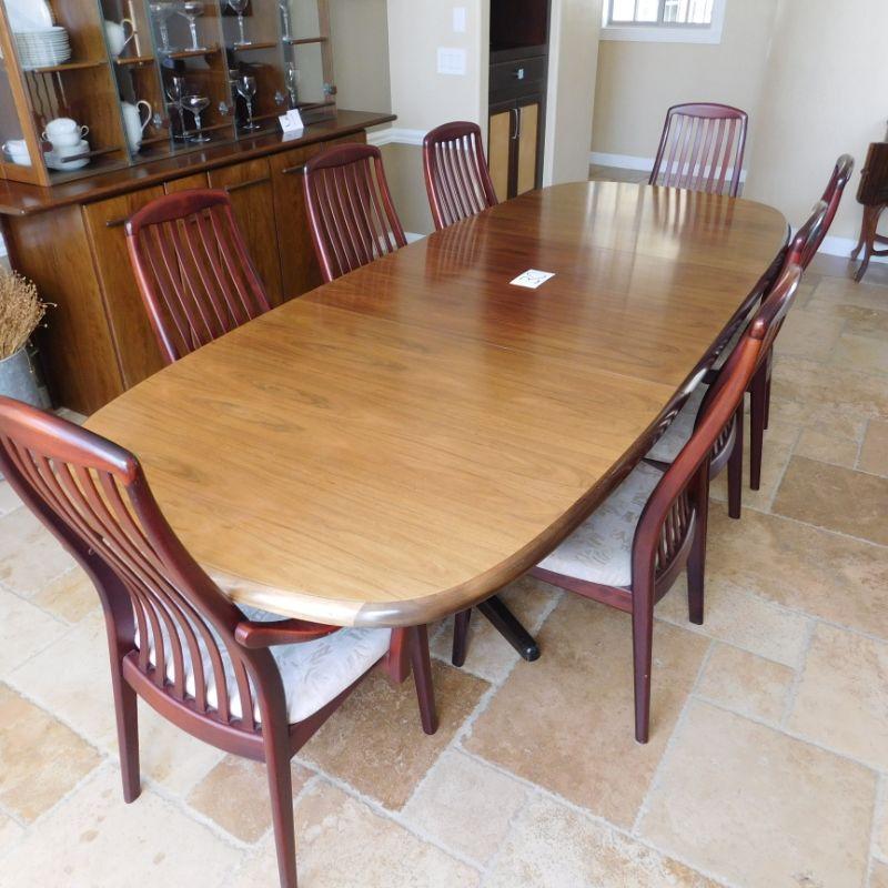 Item 30 Danish more modern dining set with two arm chairs and six side chairs length is 82 depth 40 inches