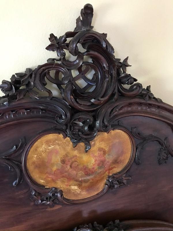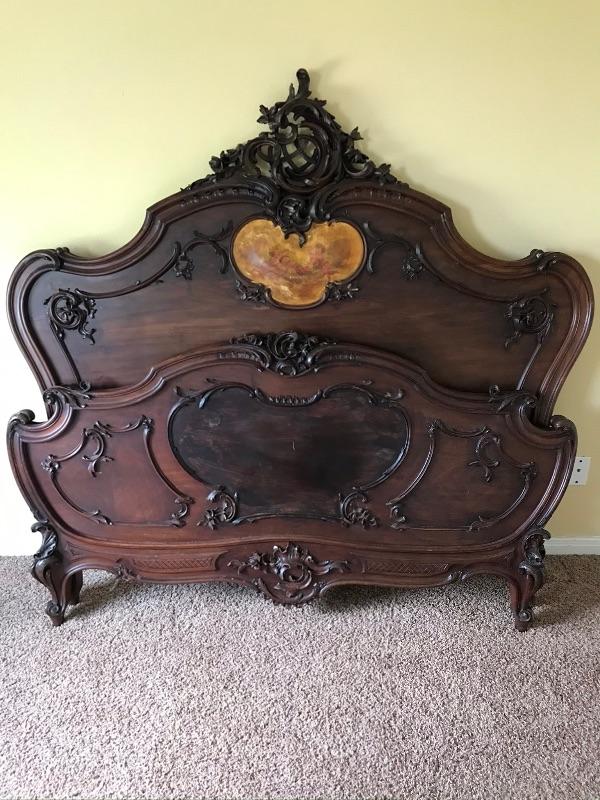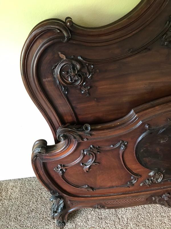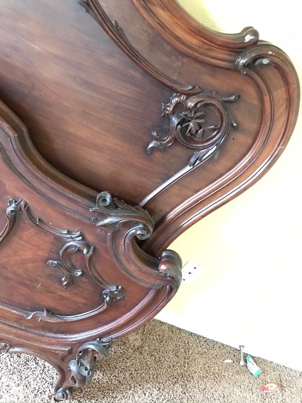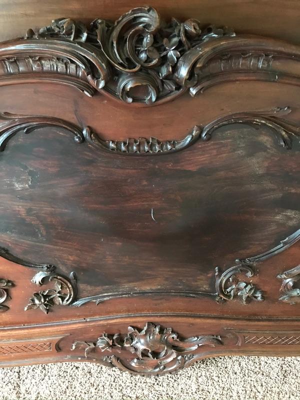 Antique King Louie style full size bed frame. Gorgeous carving!