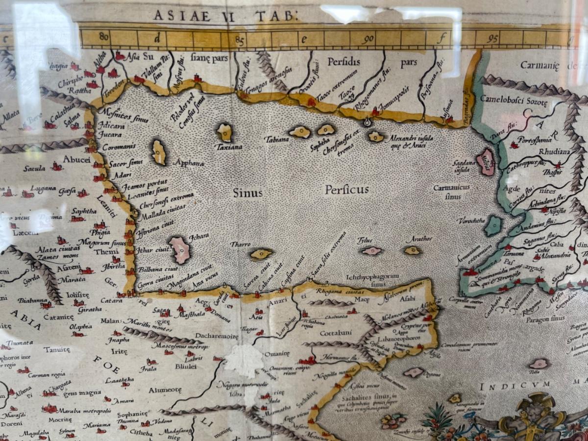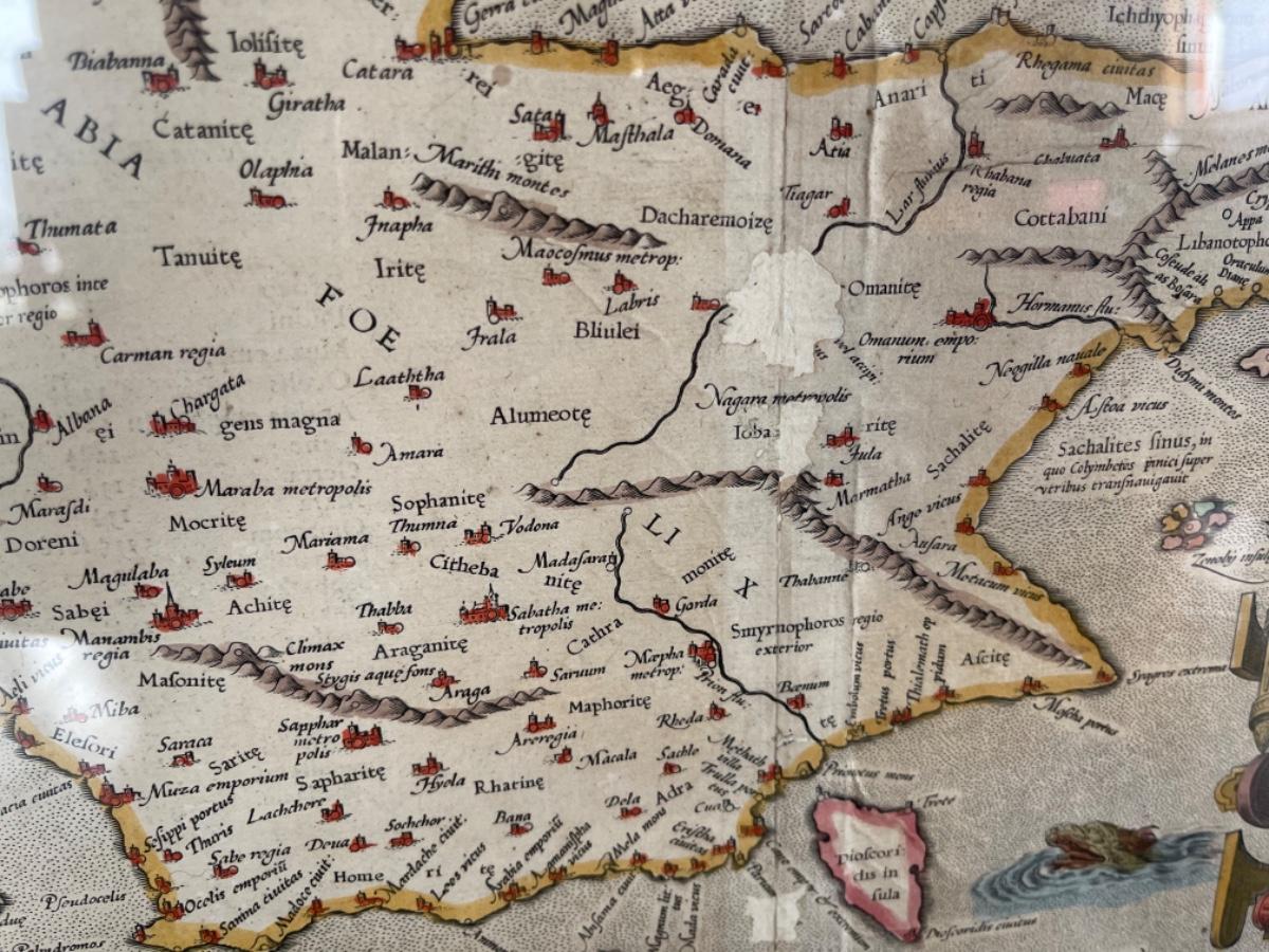Item 33. Hand drawn and colored map of Arabia, circa 1719, custom frame.