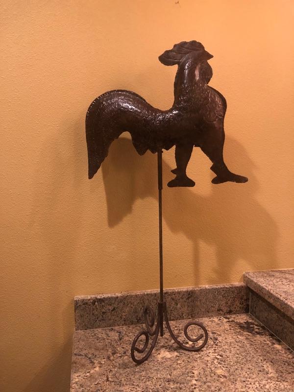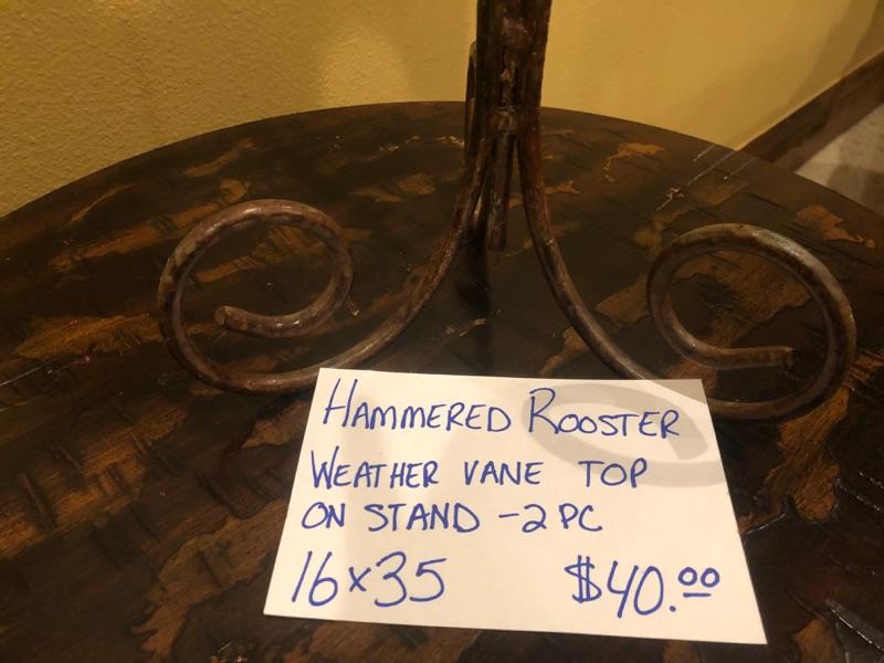 Hammered Rooster Weather Vane Top on stand- 2 piece