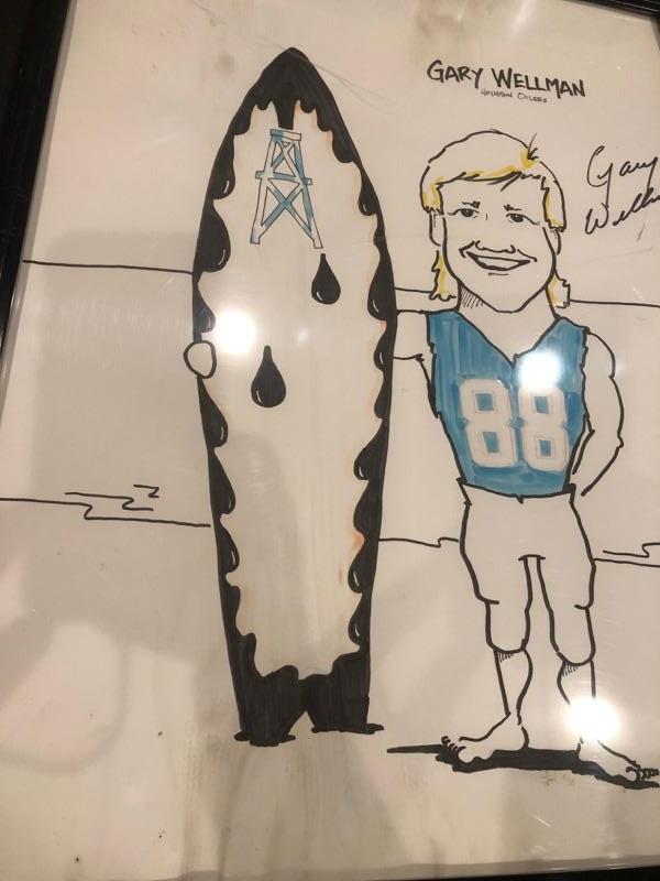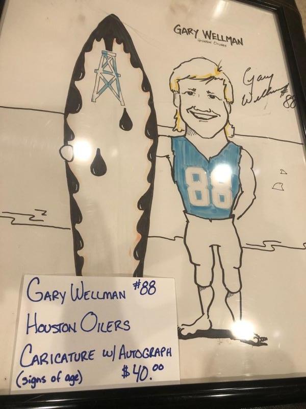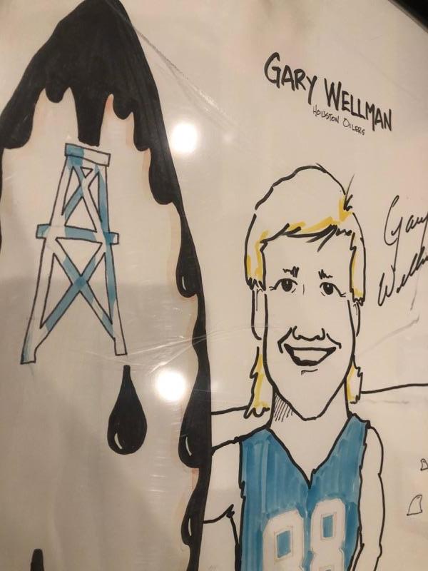 Gary Wellman #88 Houston Oilers Caricature w/Autograph