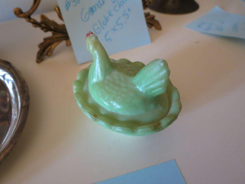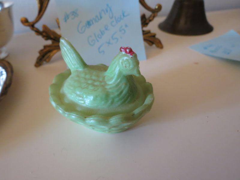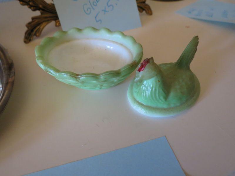 Vintage Green Chicken Glass Basket 2 pieces 2 1/2" x 2" Item # 49
