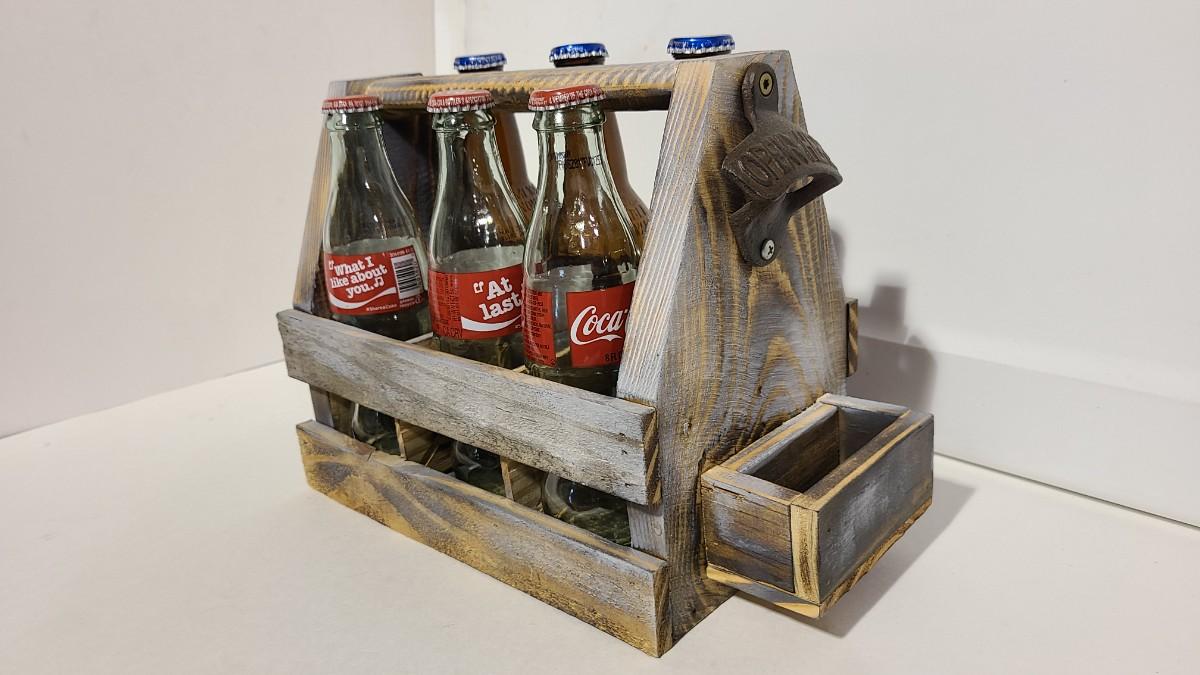 Wooden Coke Pepsi Holder with Opener -Item# 493