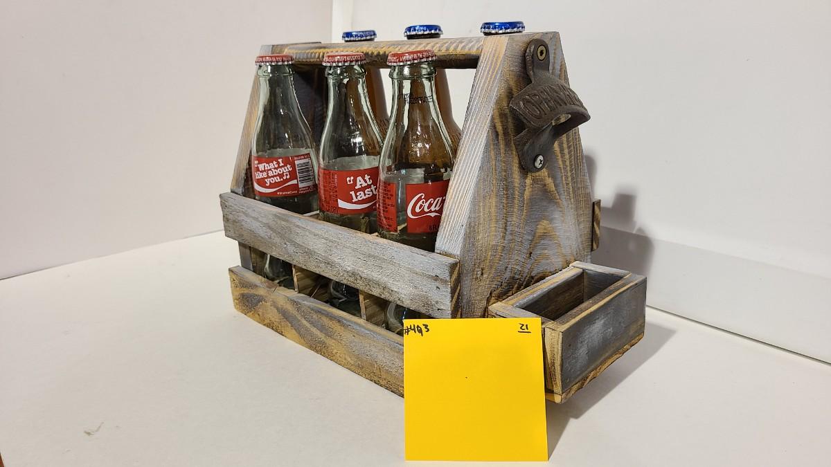 . Wooden Coke Pepsi Holder with Opener -Item# 493