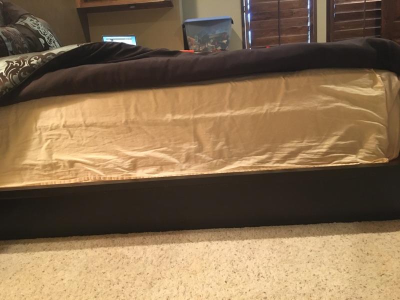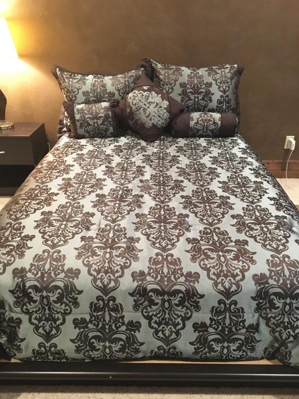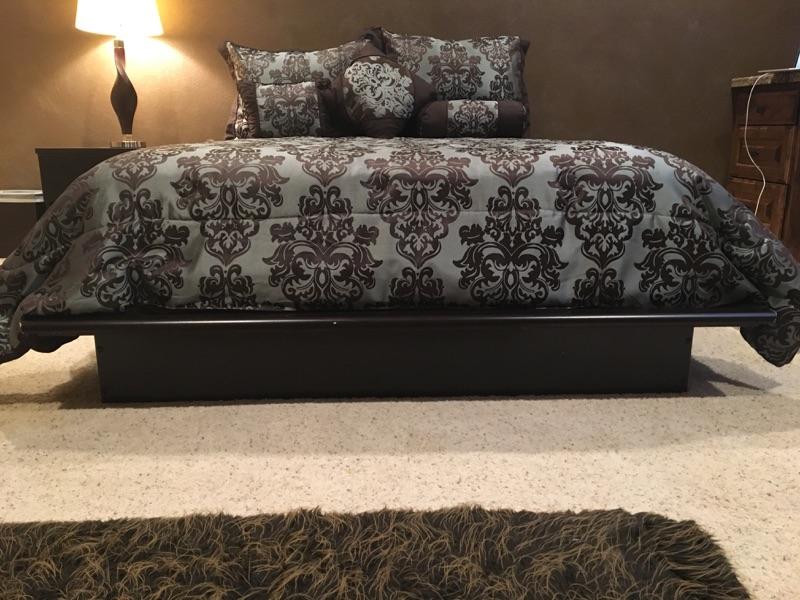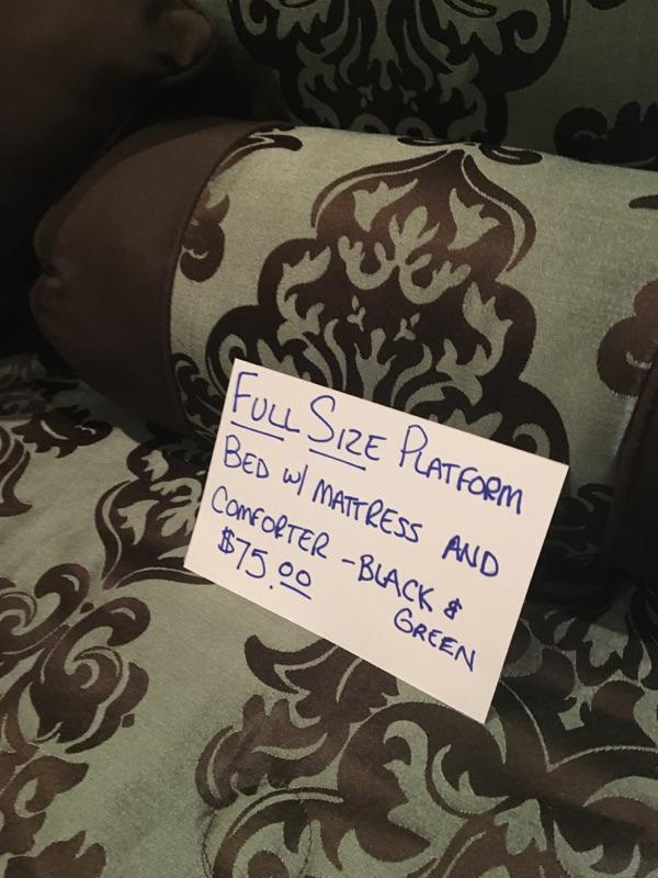 Full Size Platform bed w/mattress and comforter- black and green