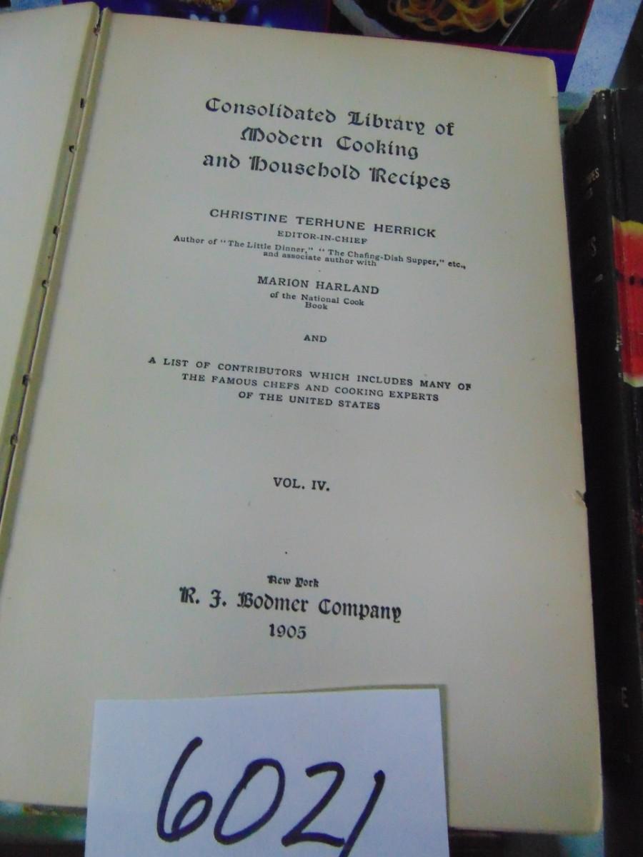 Item 6021 Six Cook Books, one is 1905, one is from England
