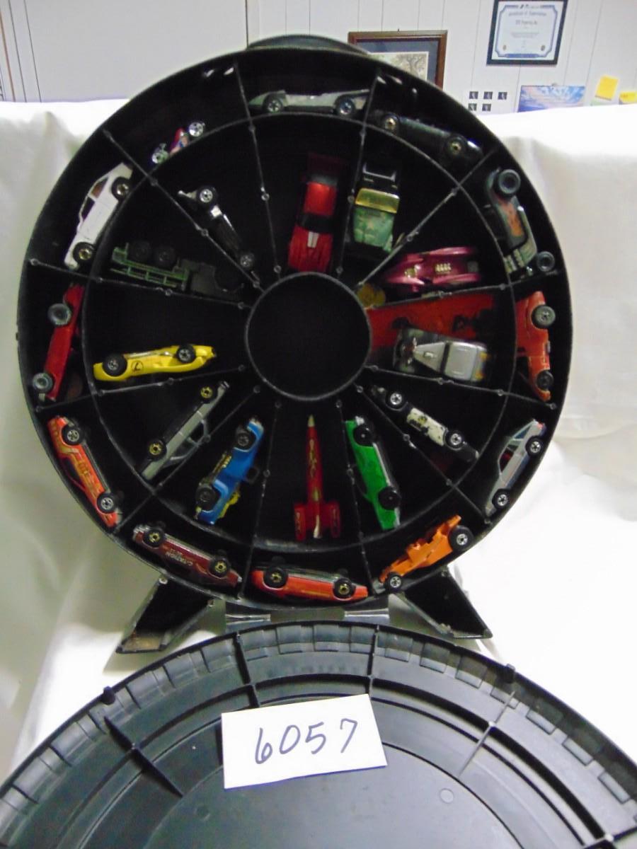 Item 6057 Twenty-four previously loved Hot Wheels in round case