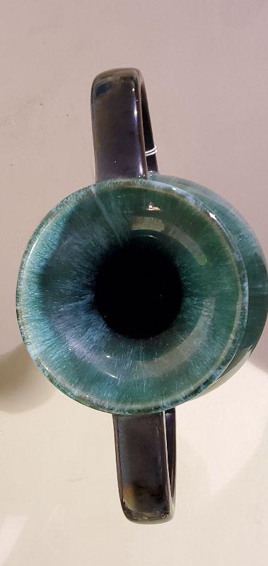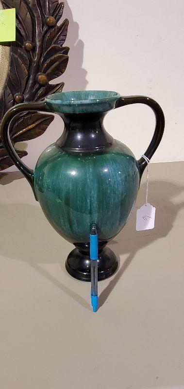 Vintage Tall Green Black Pottery Vase with Handles (item #64)