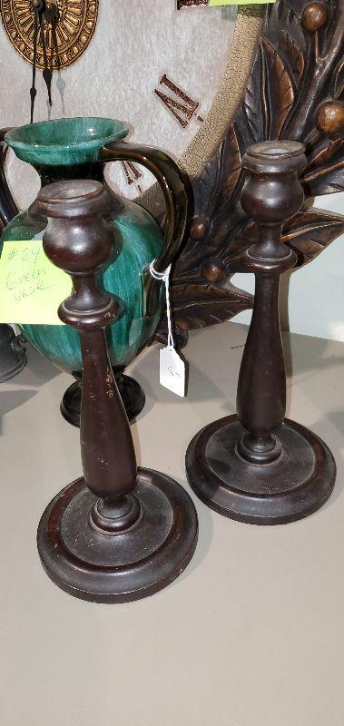 Pair of Tall Wood Wooden Black Candlesticks (item #68)