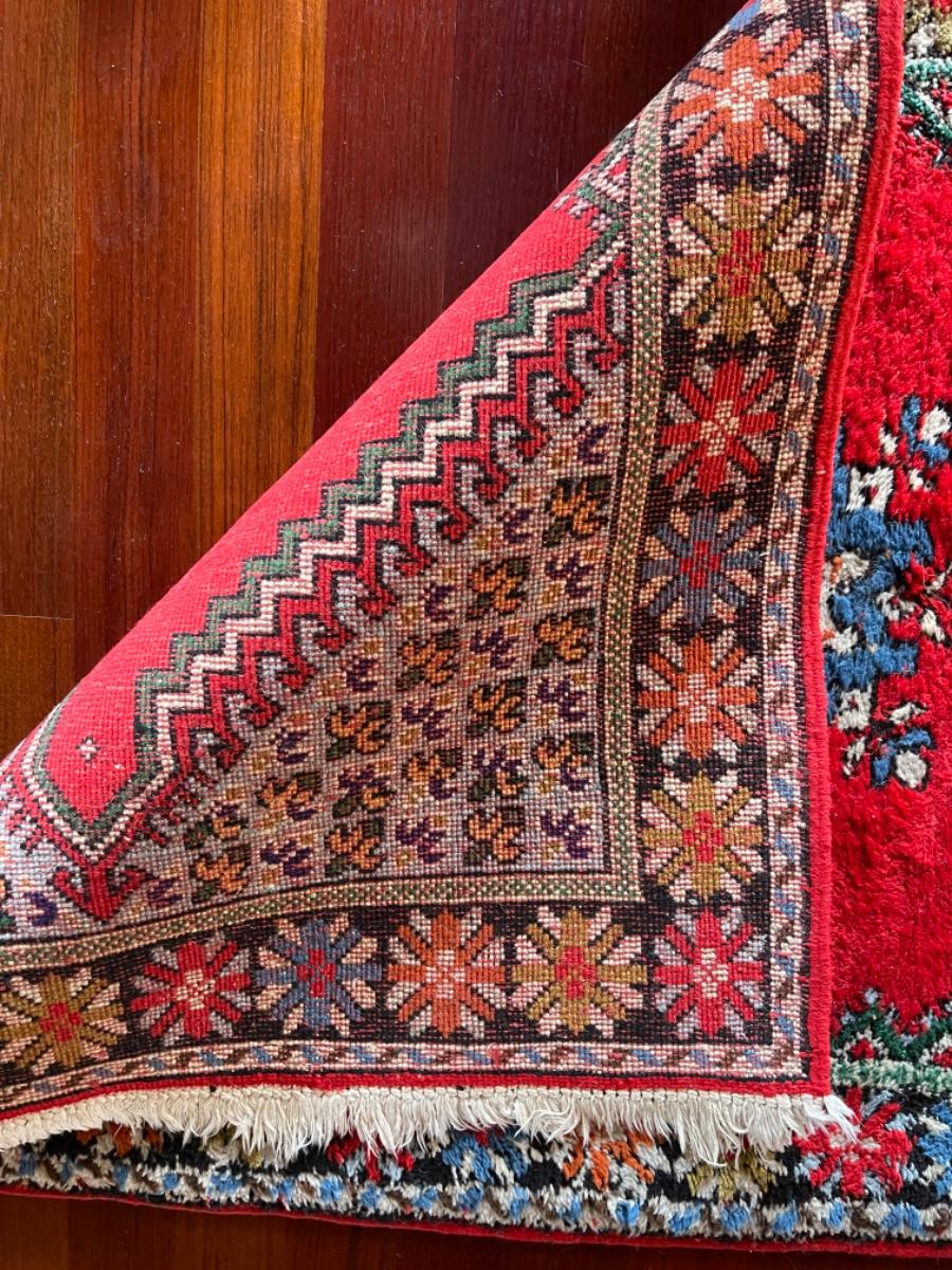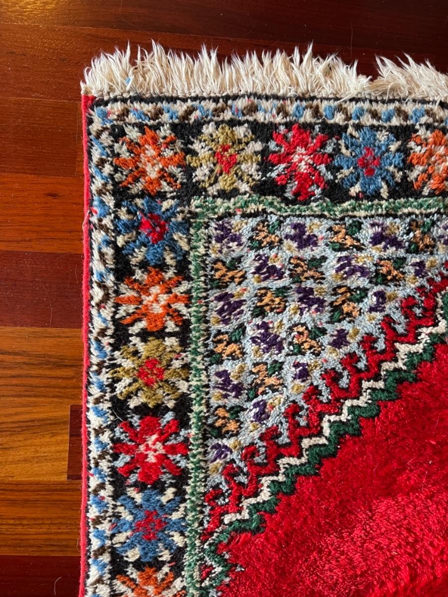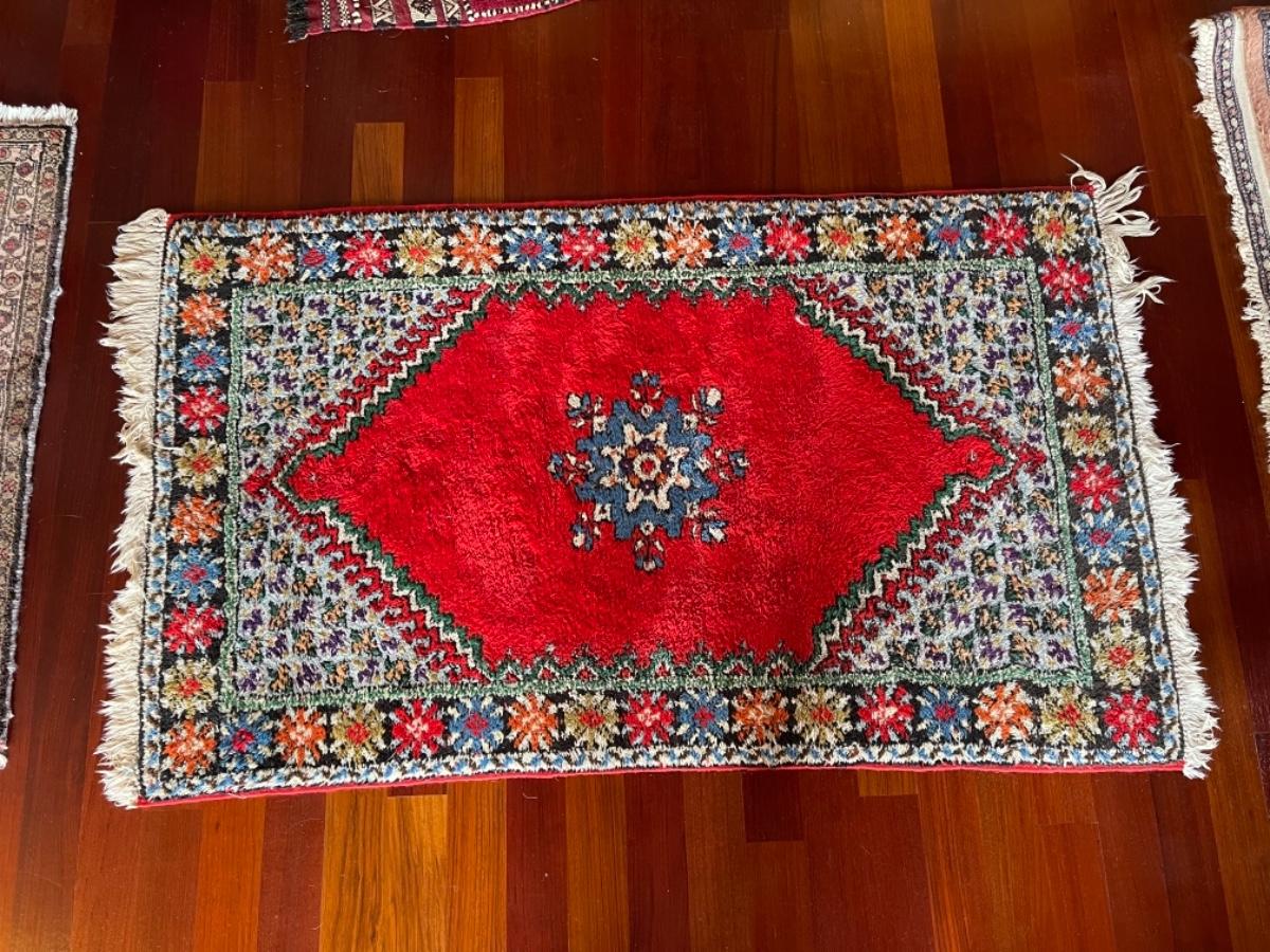 Item 7. Moroccan Rug, 1960’s, hand woven, wool, multicolored floral motifs.